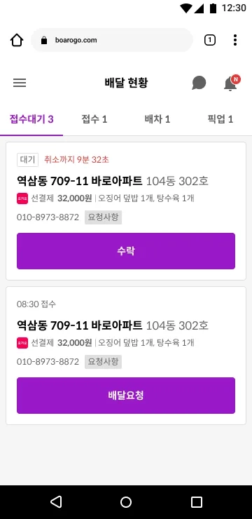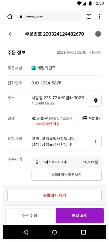 배달의민족 주문 배달 요청하기