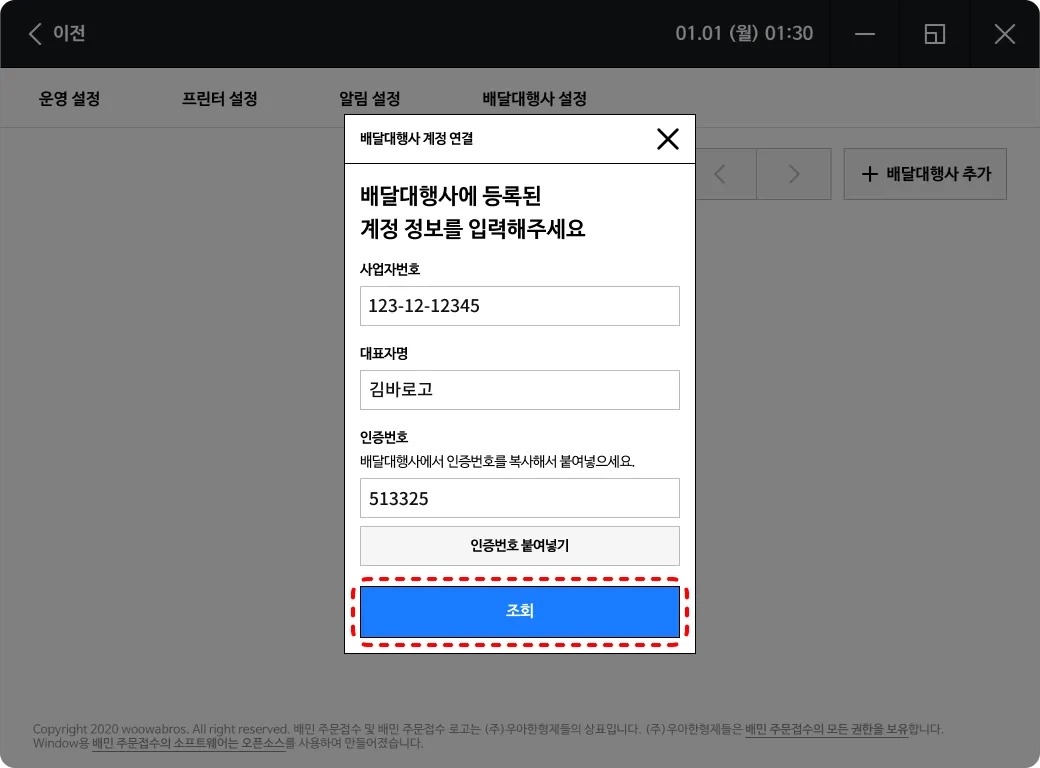 배달의민족 주문 접수 프로그램에서 발급받은 연결 번호로 스토어프로그램 연결하기