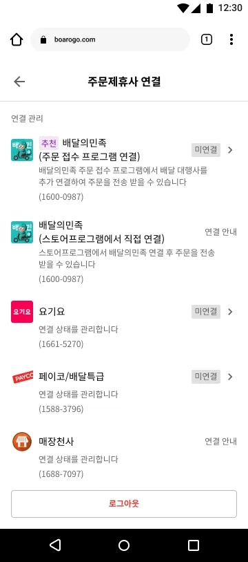 스토어프로그램에서 배달의민족 연결 번호 받기