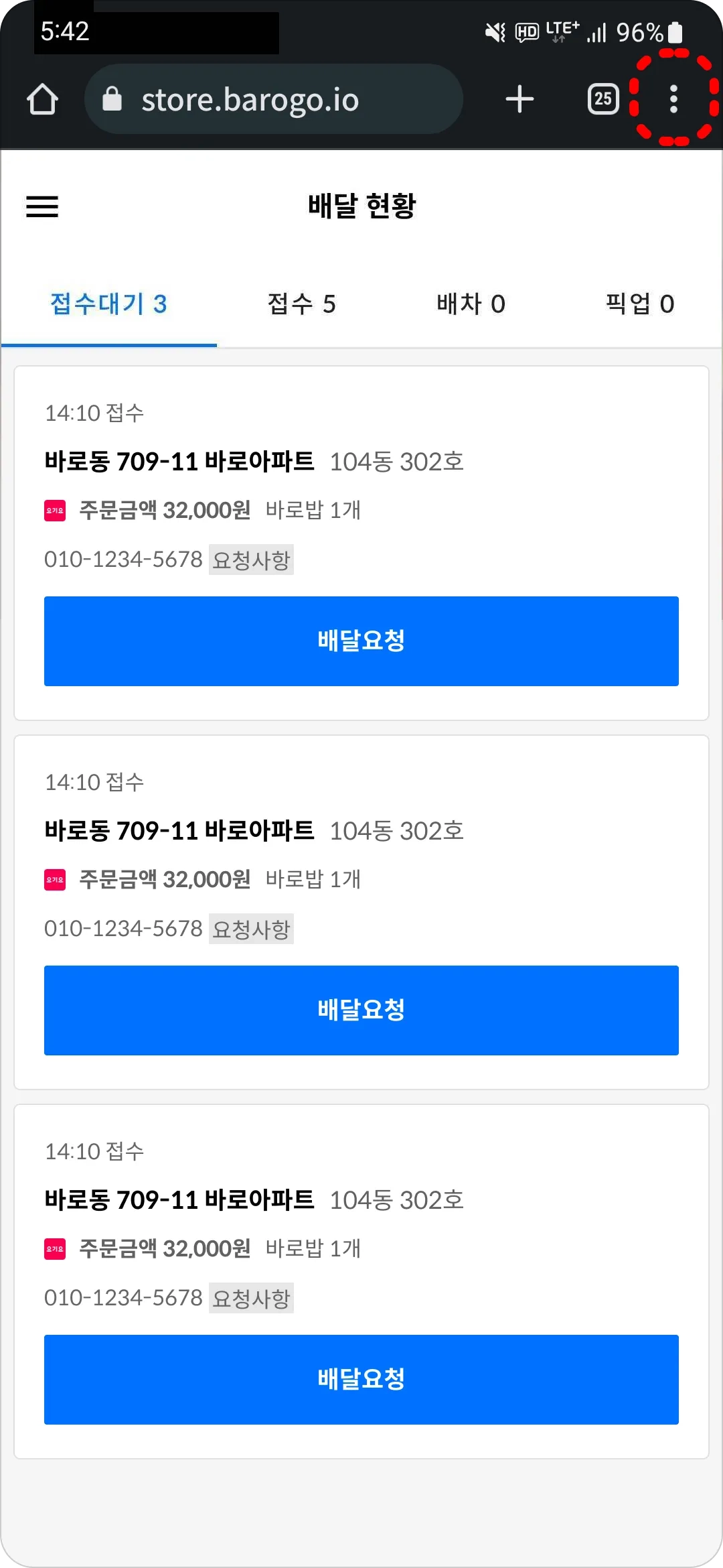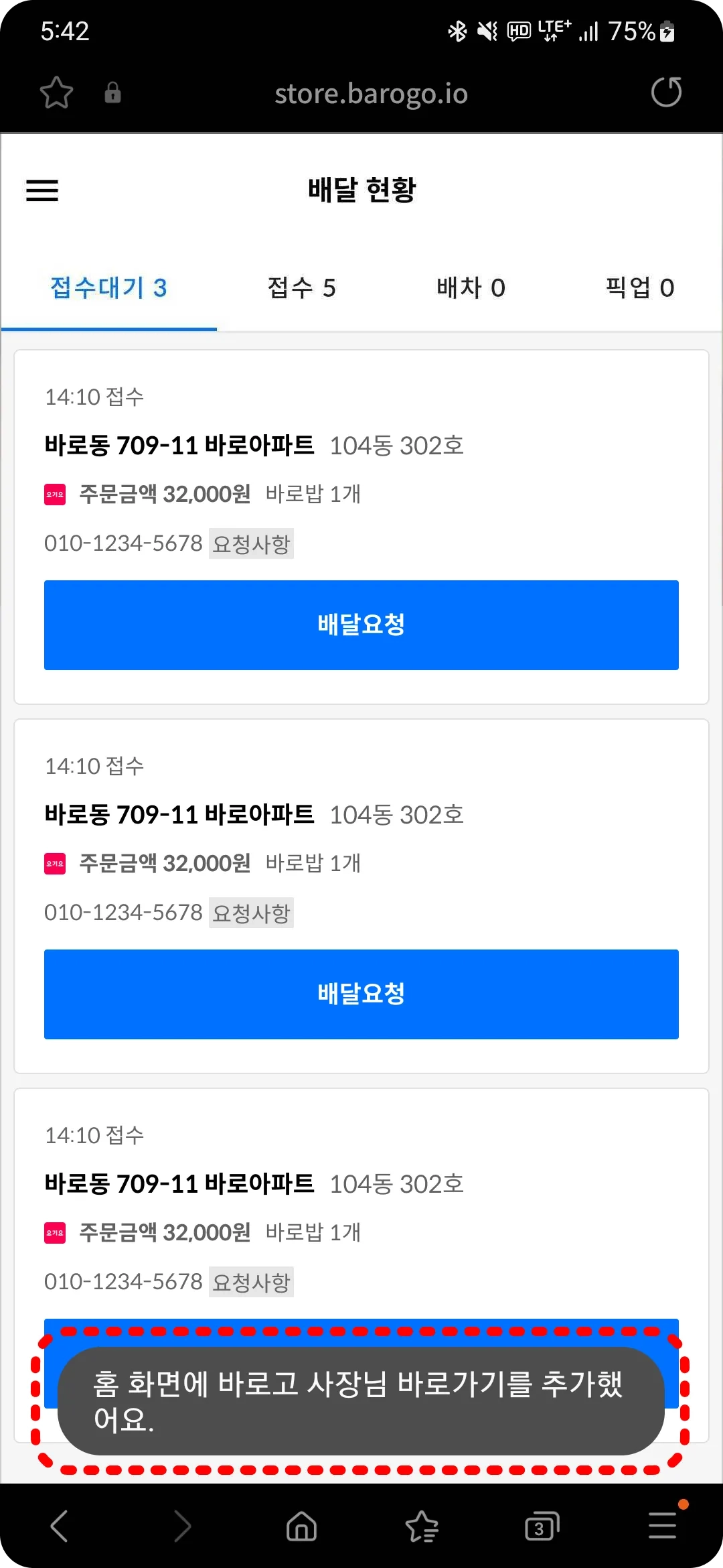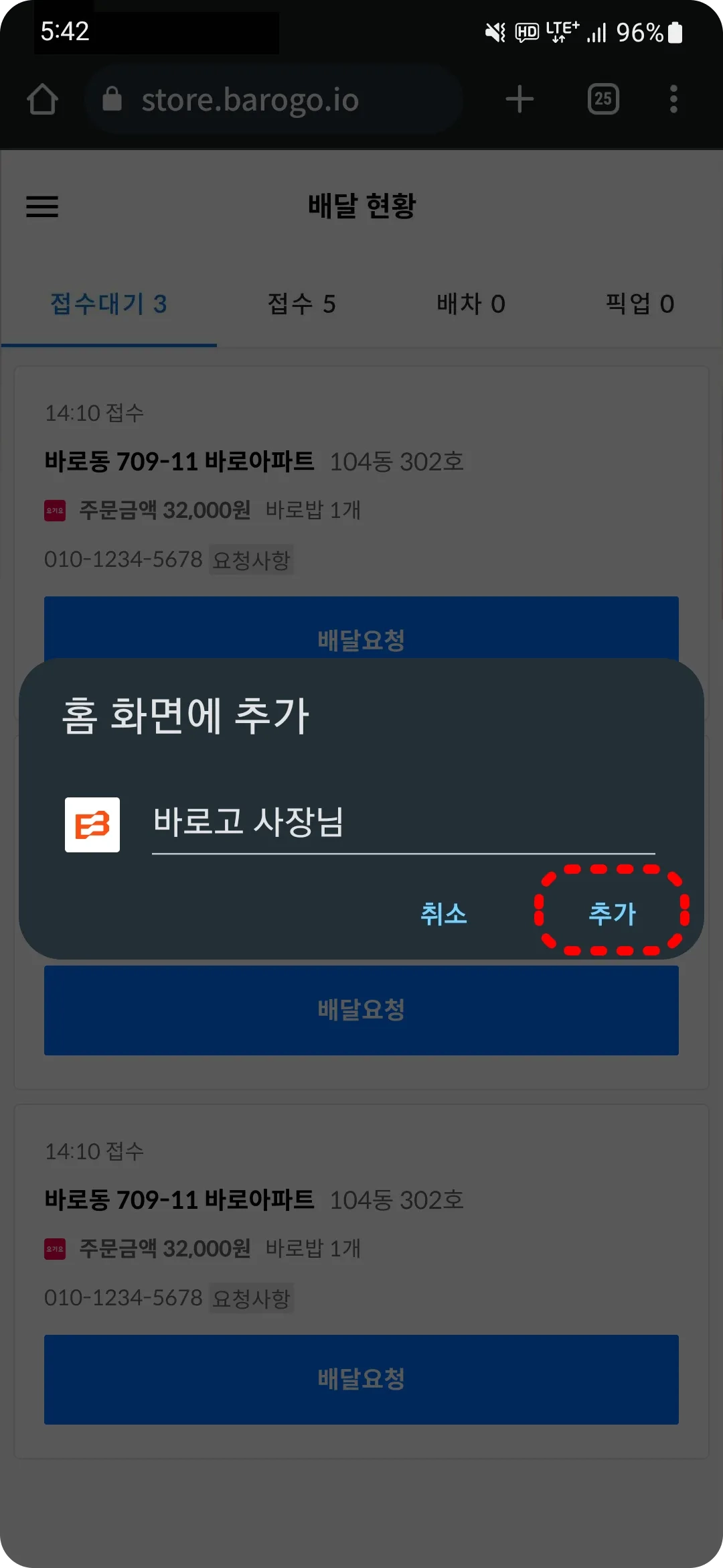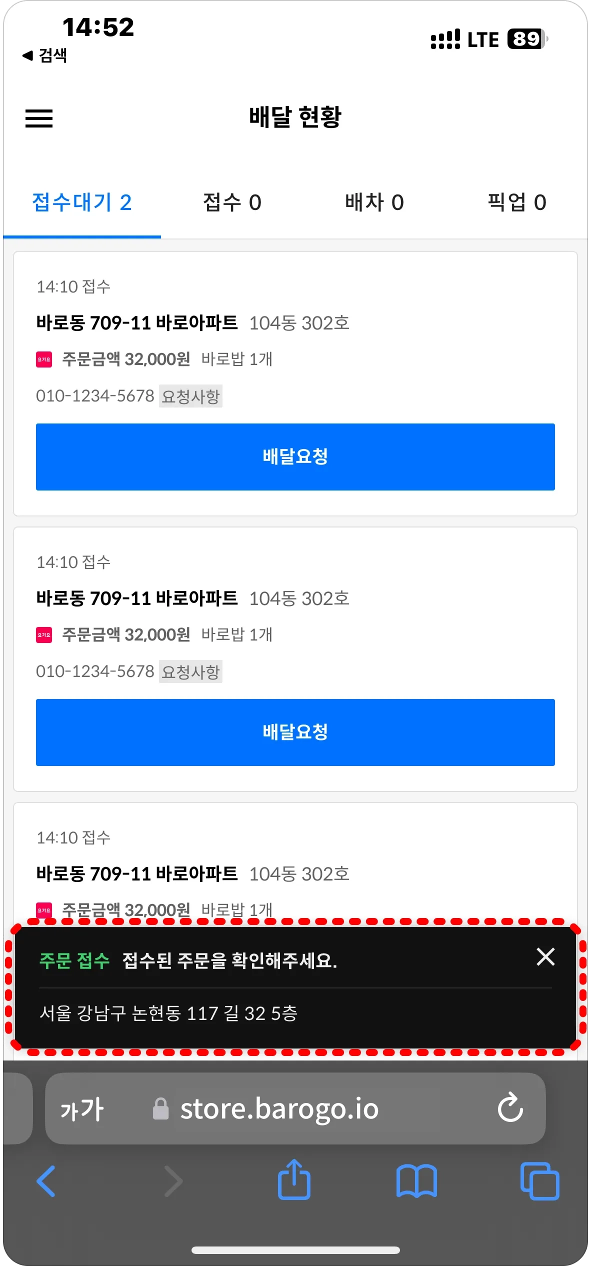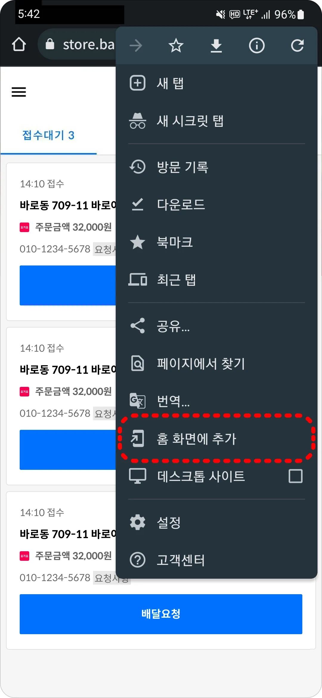 더욱 명확한 배달 정보를 받고 싶으시다면 삼성 브라우저 사용을 권장 드립니다.