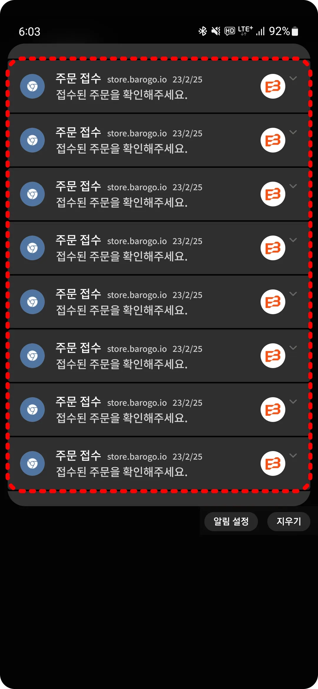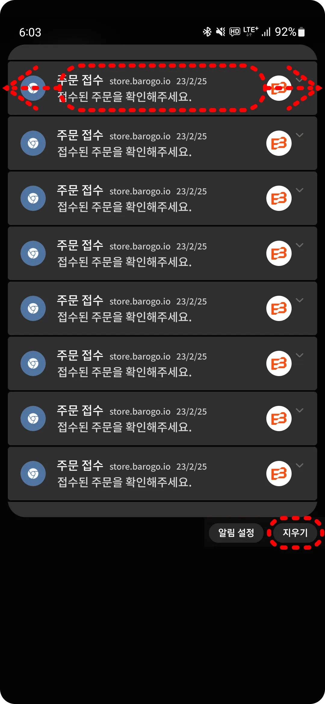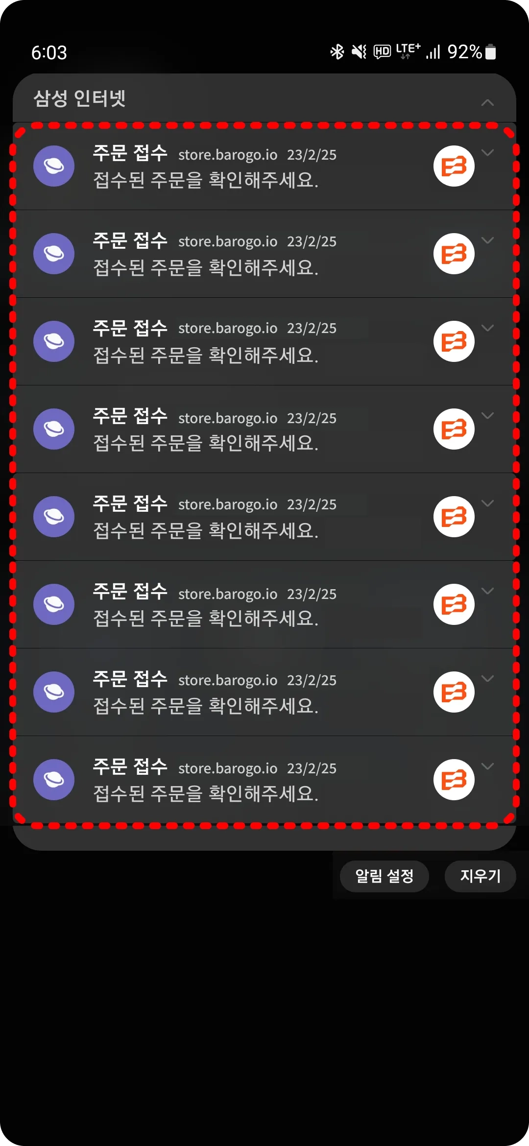 알림이 24개가 되기 전에 삭제하여 주세요.