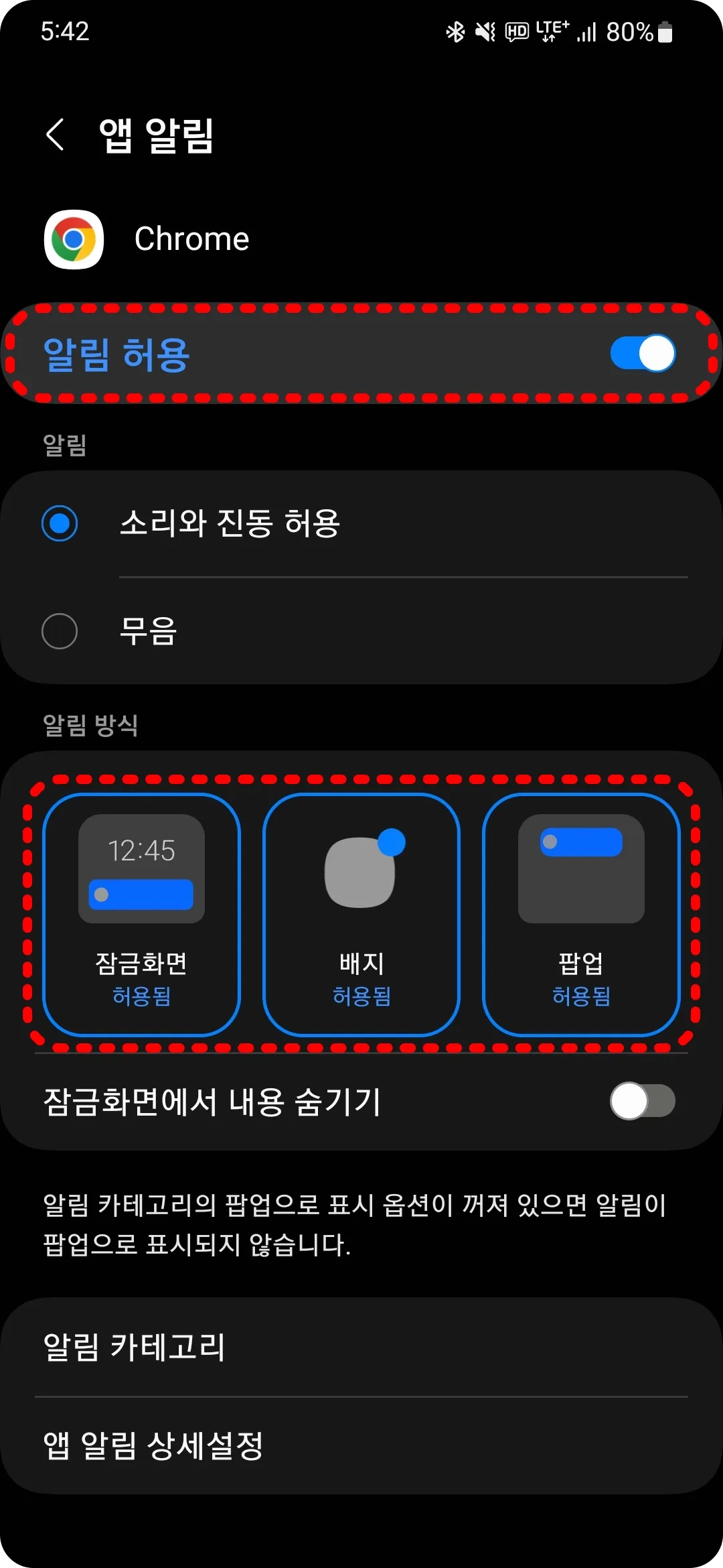 잠금화면, 배지, 팝업 등의 알림을 놓치지 않기 위해서는 추가적인 설정이 필요합니다.