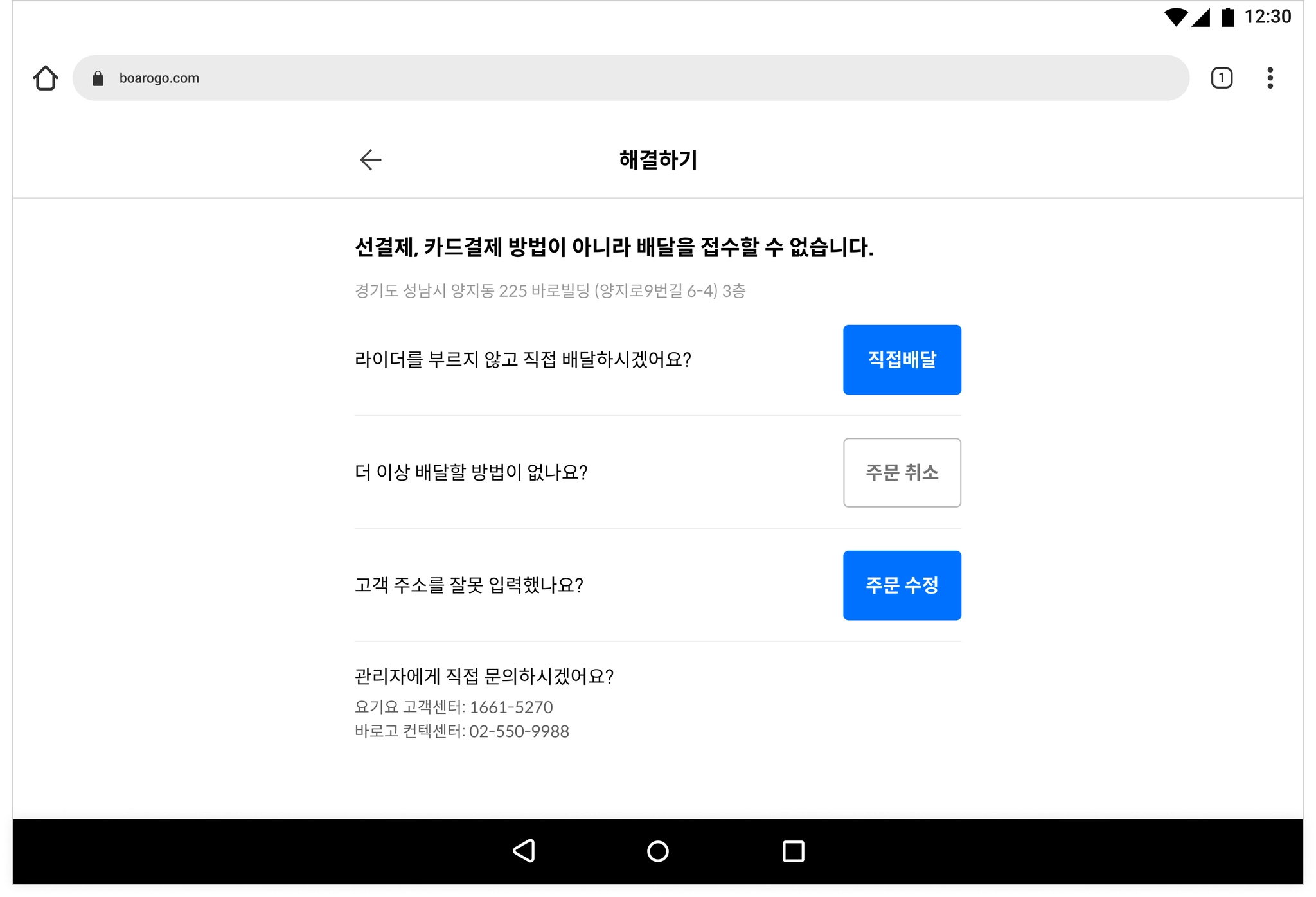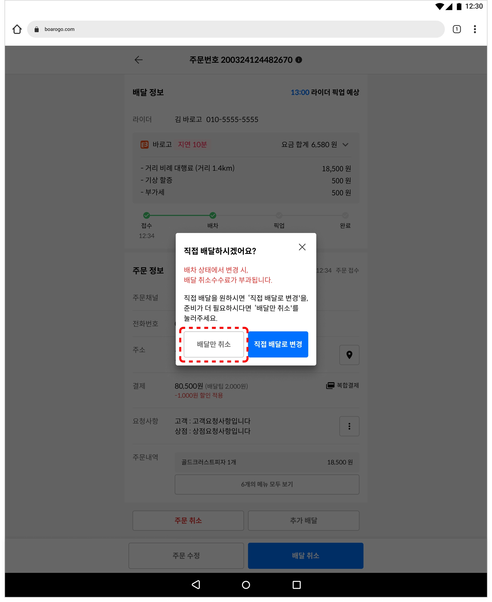 (직접 배달 변경 상태에서 다시 바로고 배달 요청으로 변경 가능합니다.