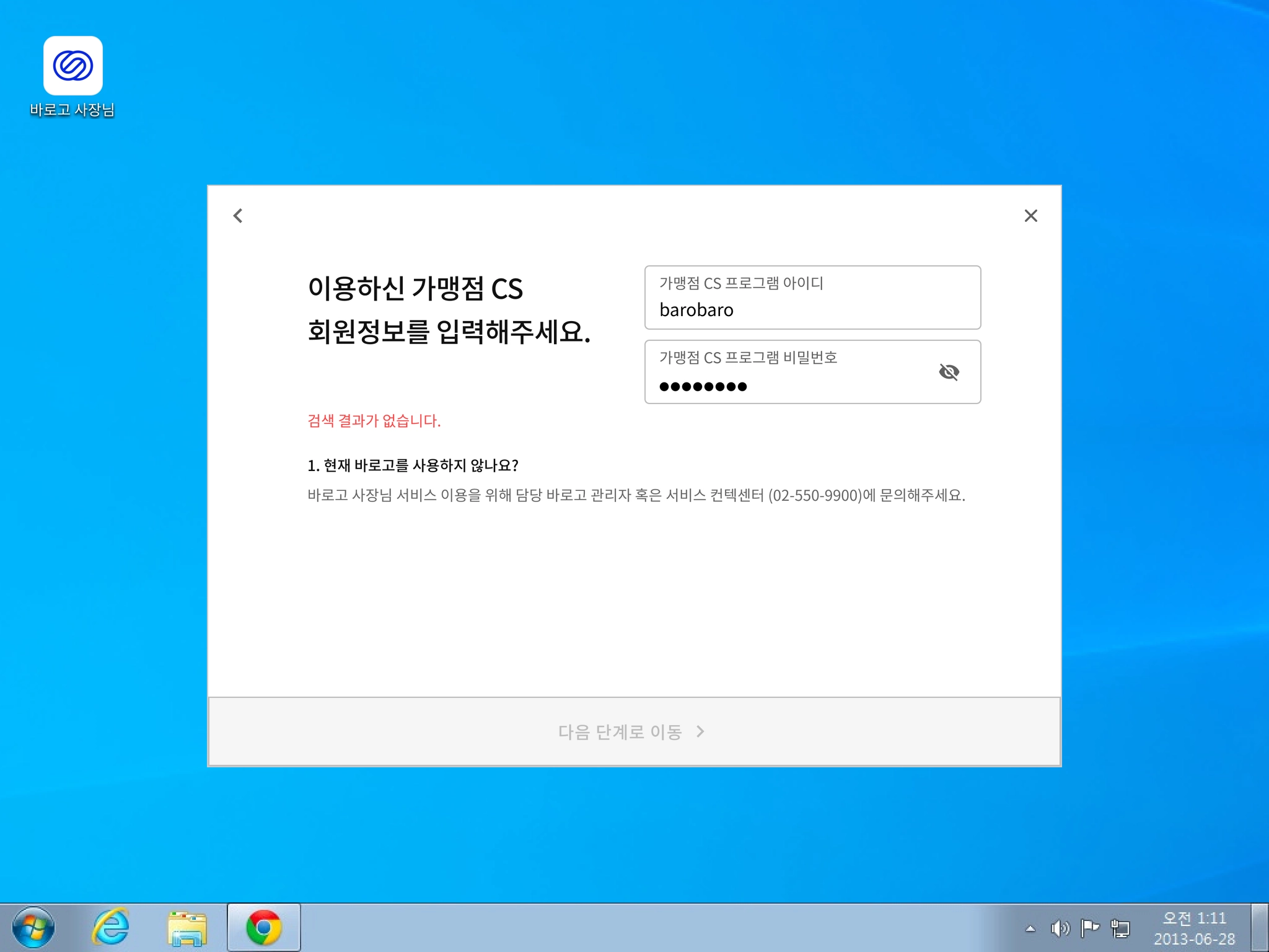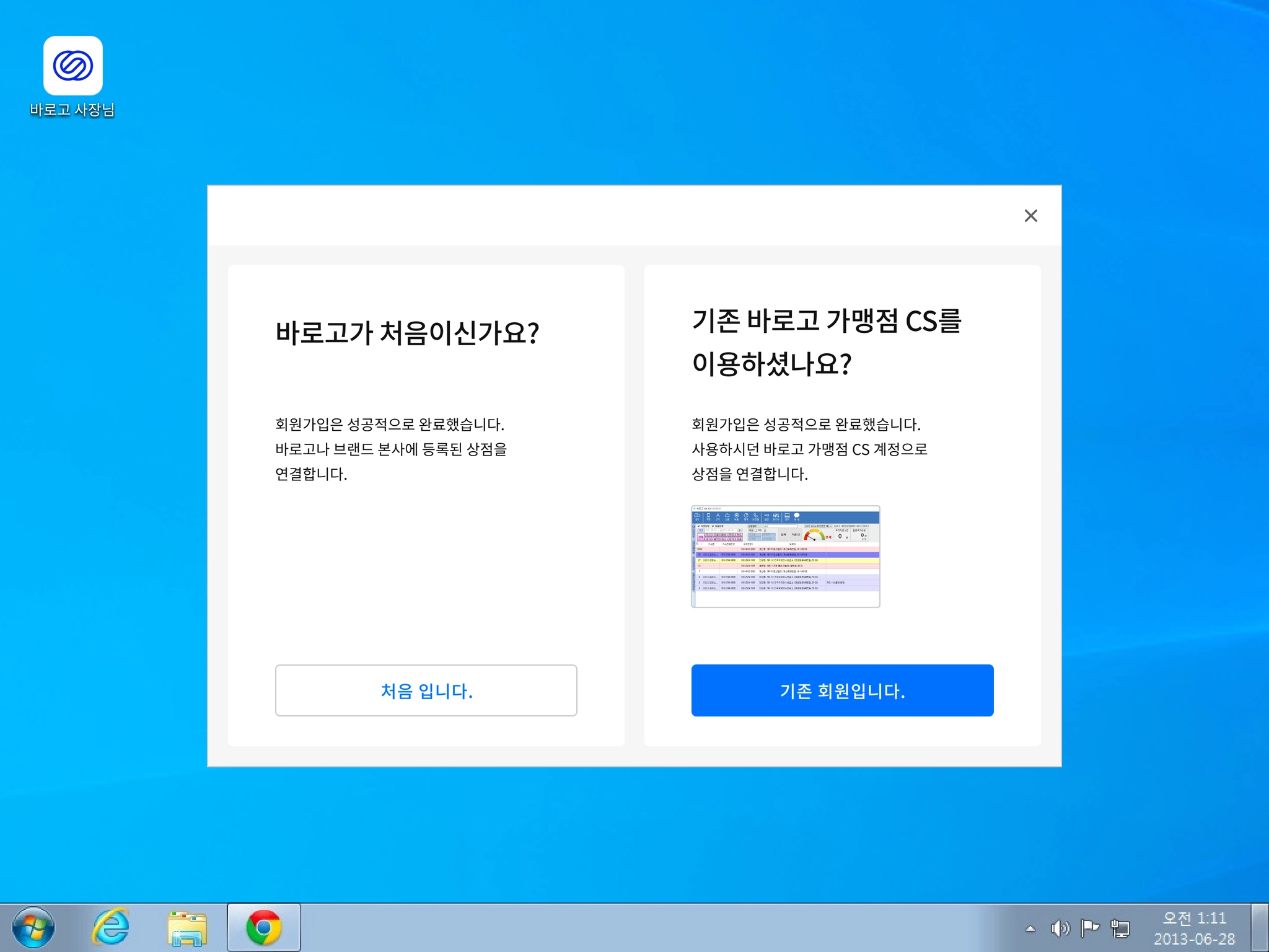 바로고 가맹점 CS 프로그램을 사용하지 않았다면, 바로고 상점 CS 회원이 아닙니다 를 선택해 주세요.
