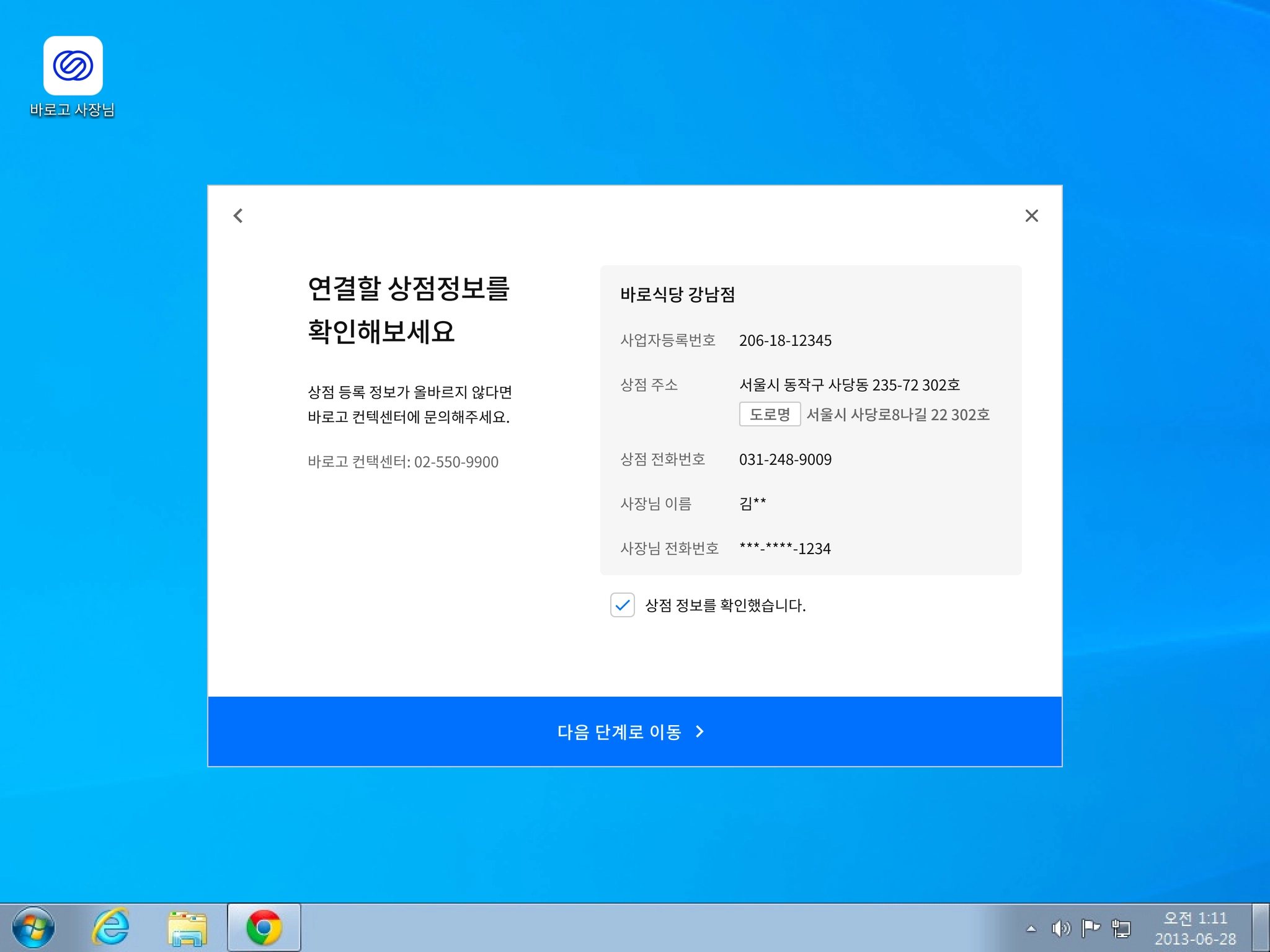 혹시 가입 정보와 상점 등록 정보가 다르면, 바로고에서 정확한 정보 확인을 한 후 신속히 사용하실 수 있도록 도와드리겠습니다. (영업일 기준 최대 7일 소요)