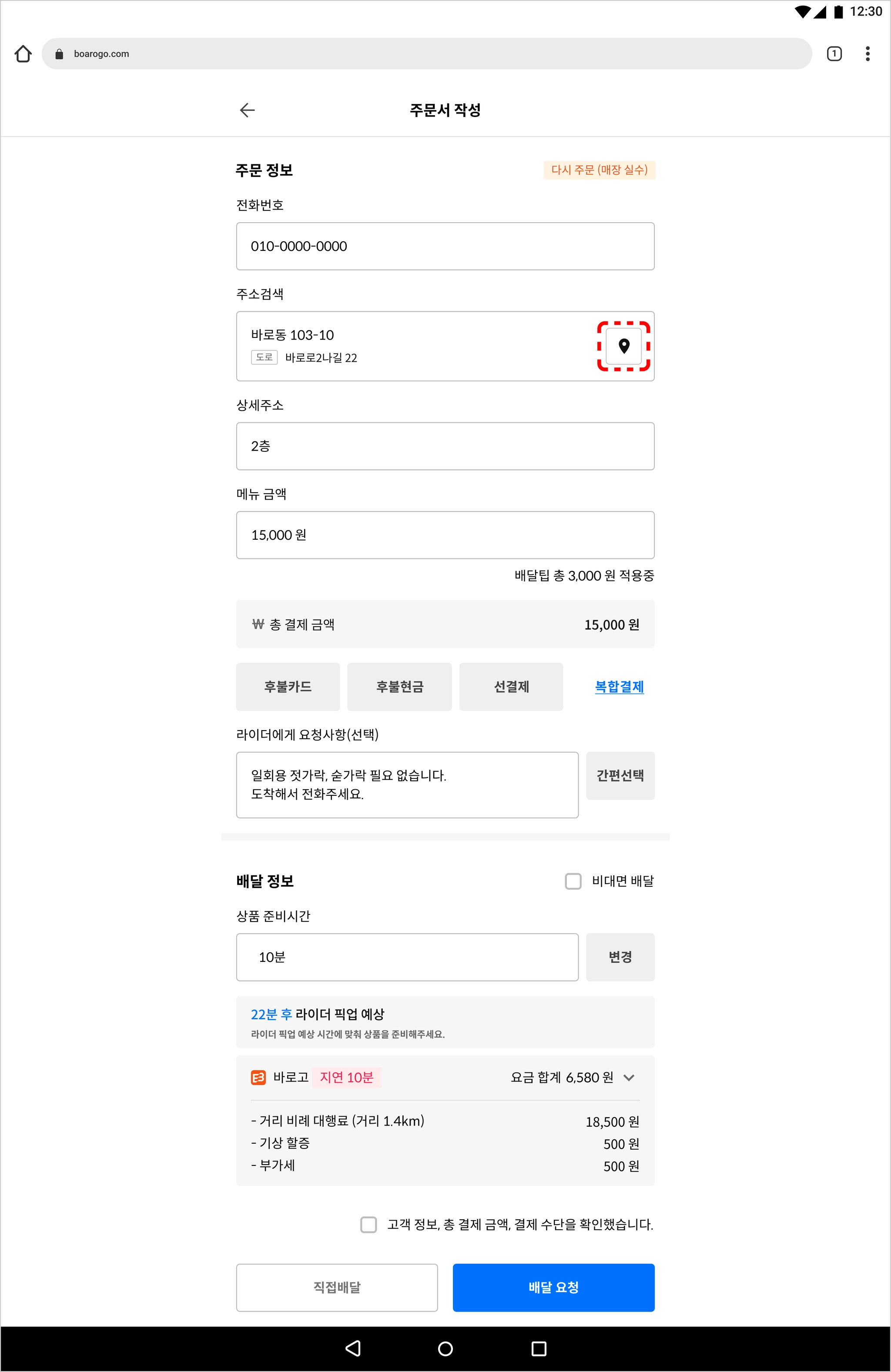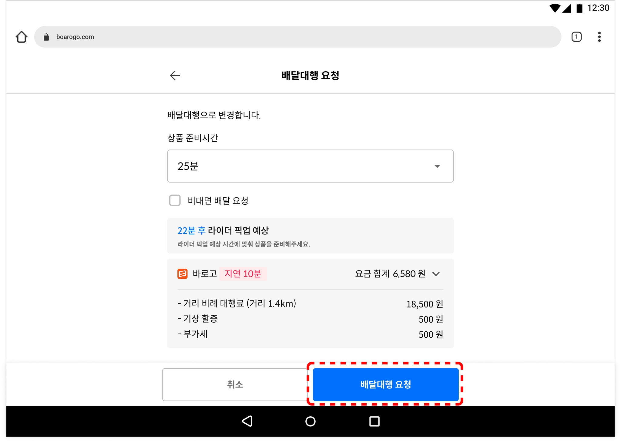 직접배달을 바로고에게 다시 배달요청하고 싶나요?