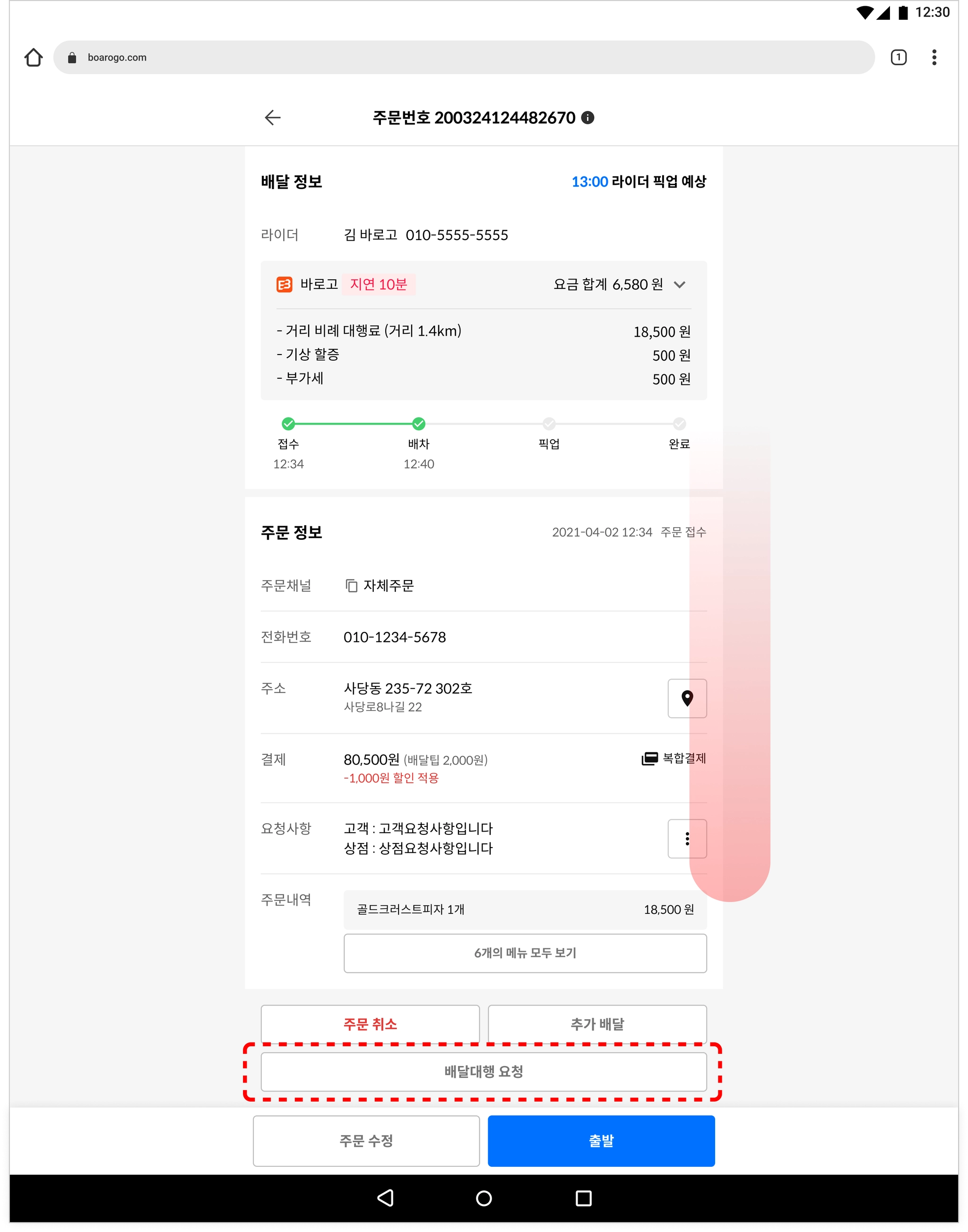 (직접 배달 변경 상태에서 다시 바로고 배달 요청으로 변경 가능합니다.