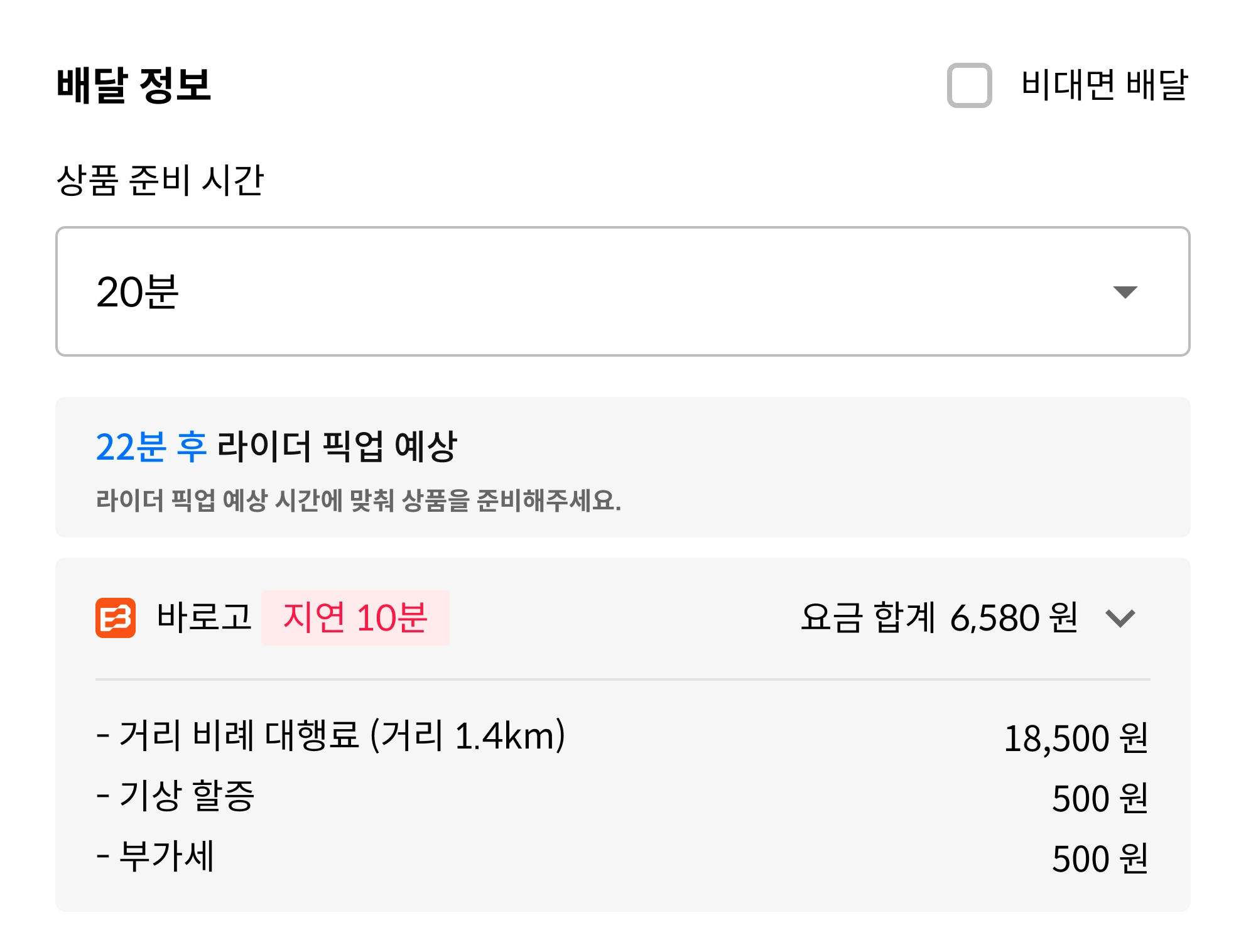 결제수단이 선결제이고, 고객이 비대면 배달을 요청한 경우, 비대면 배달체크박스를 선택해주세요.