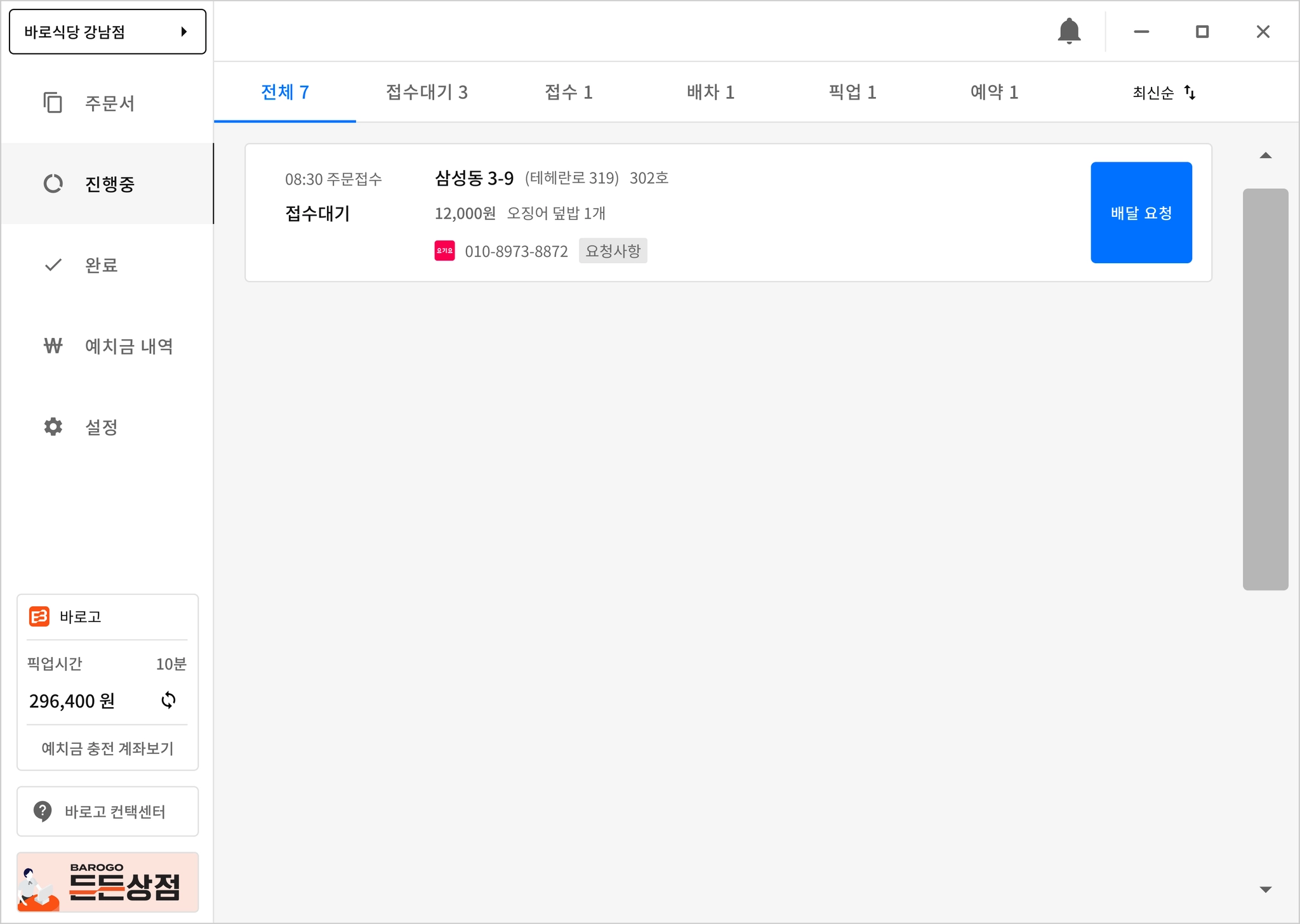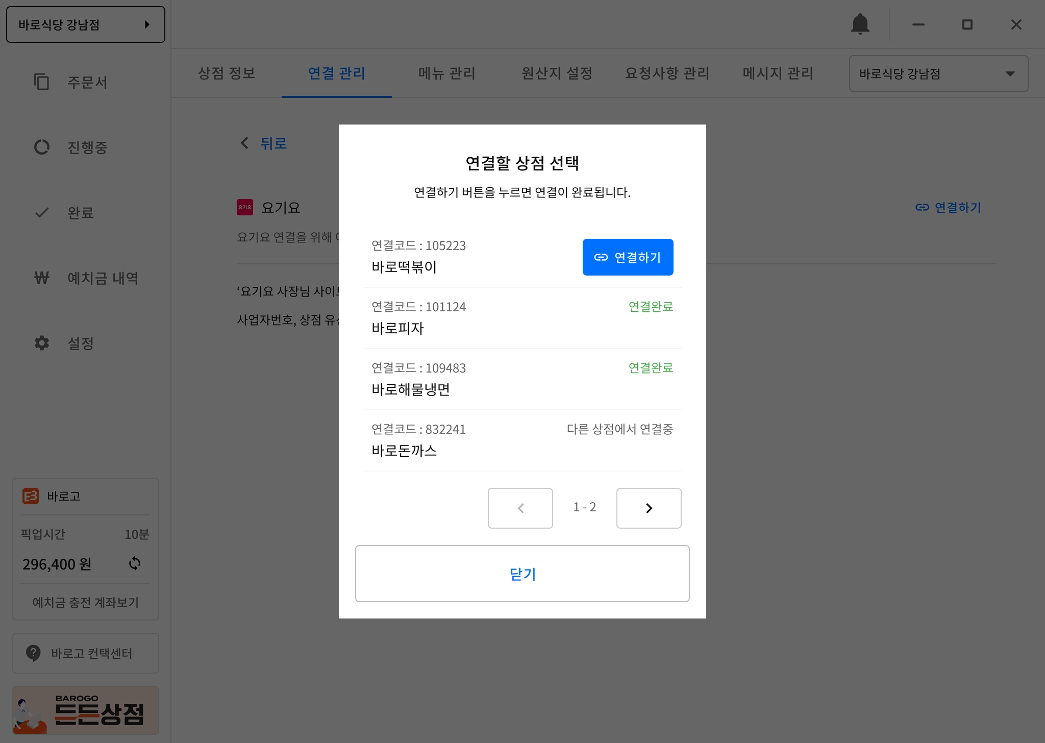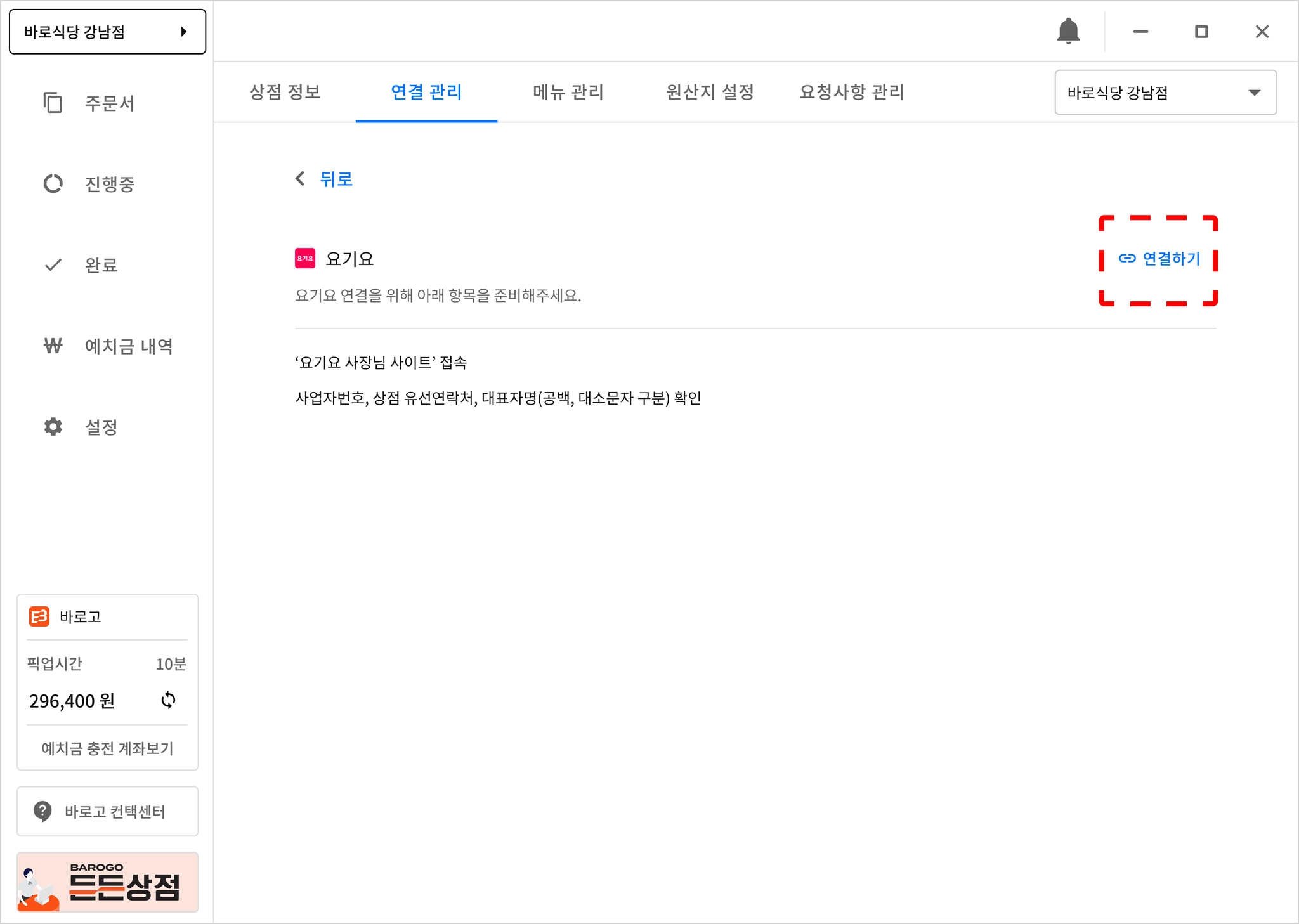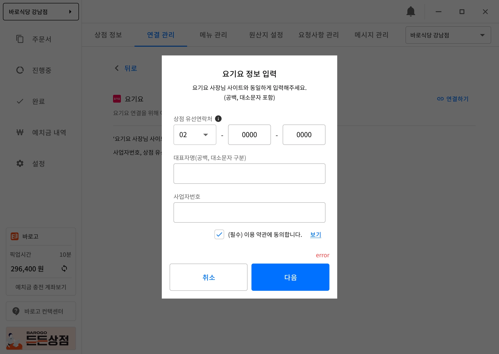 바로고 사장님 프로그램에서 요기요 주문을 취소 할 수 없습니다.