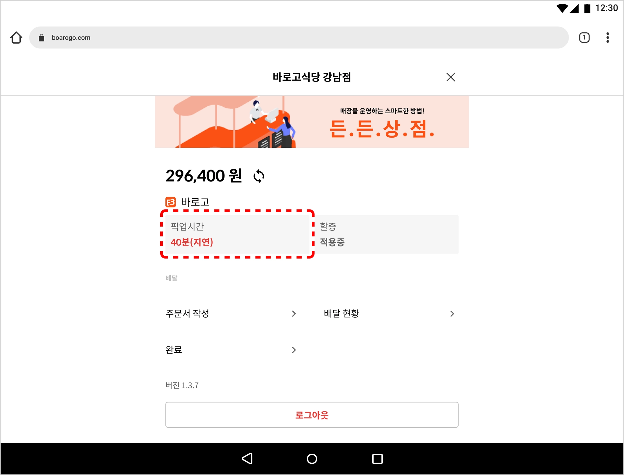 라이더 픽업 예상 시간은 사장님이 직접 설정하는 상품 준비시간 또는