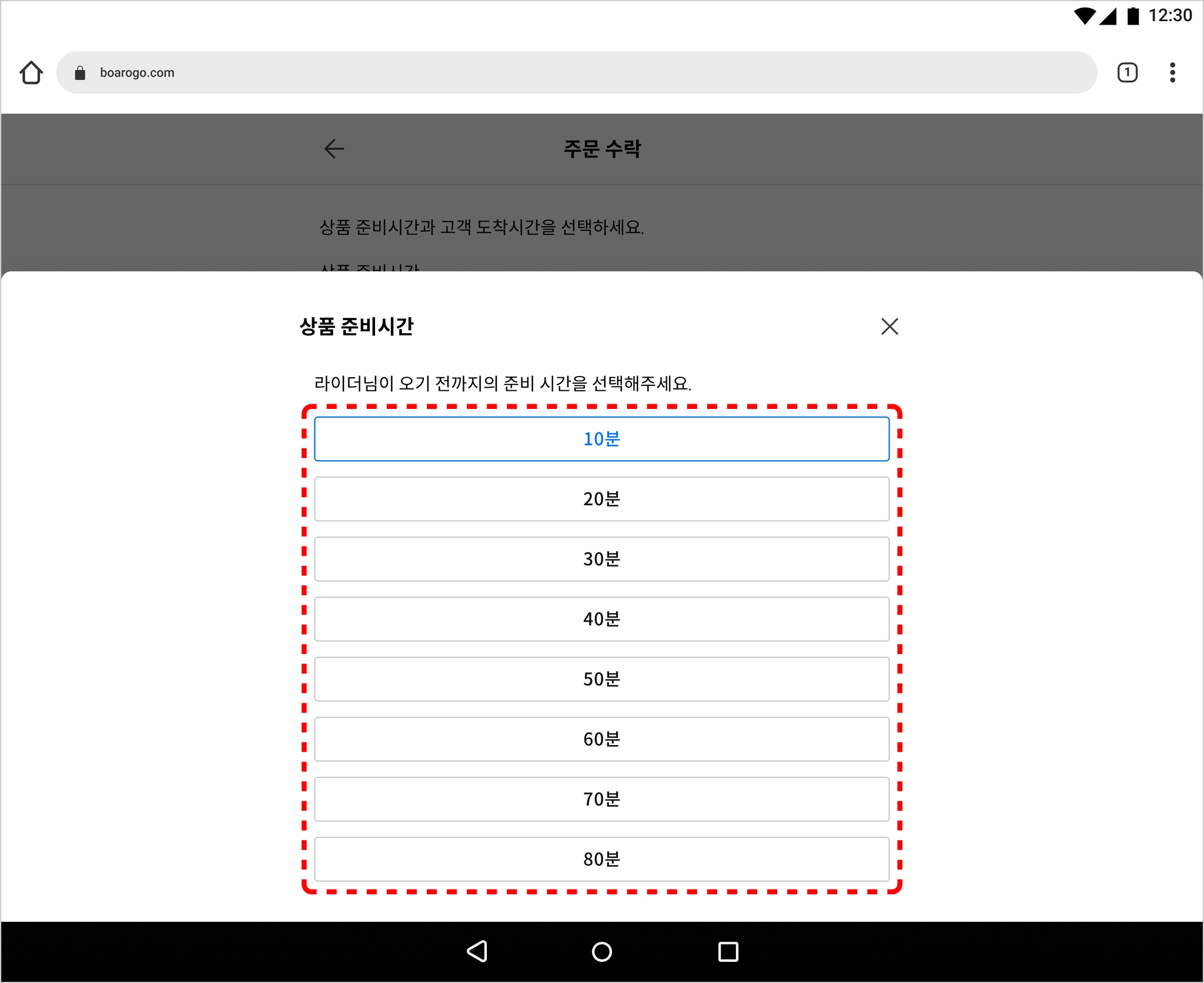 ❗️ 상품 준비 시간은 사장님이 상품을 준비하는데 필요한 시간입니다.