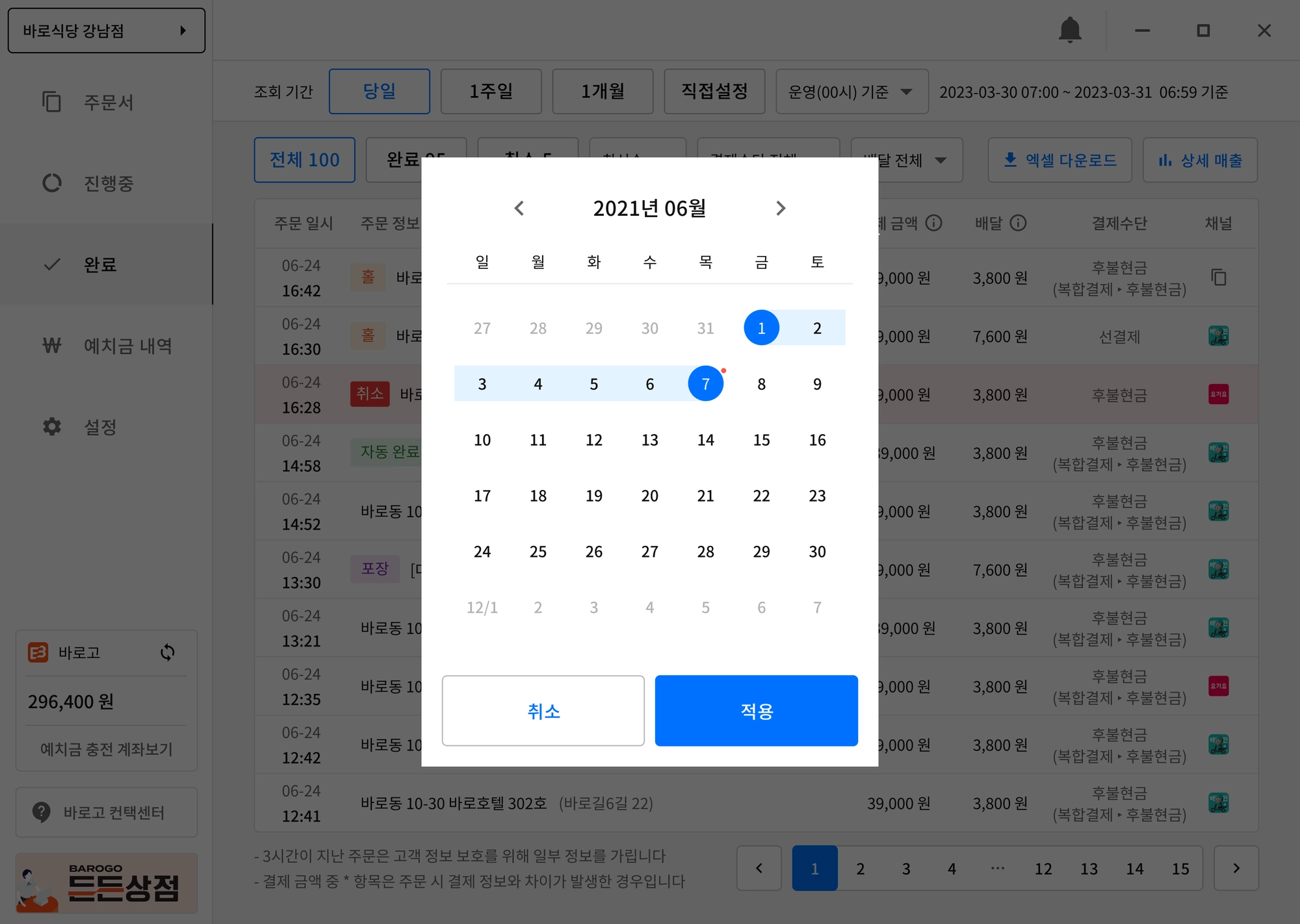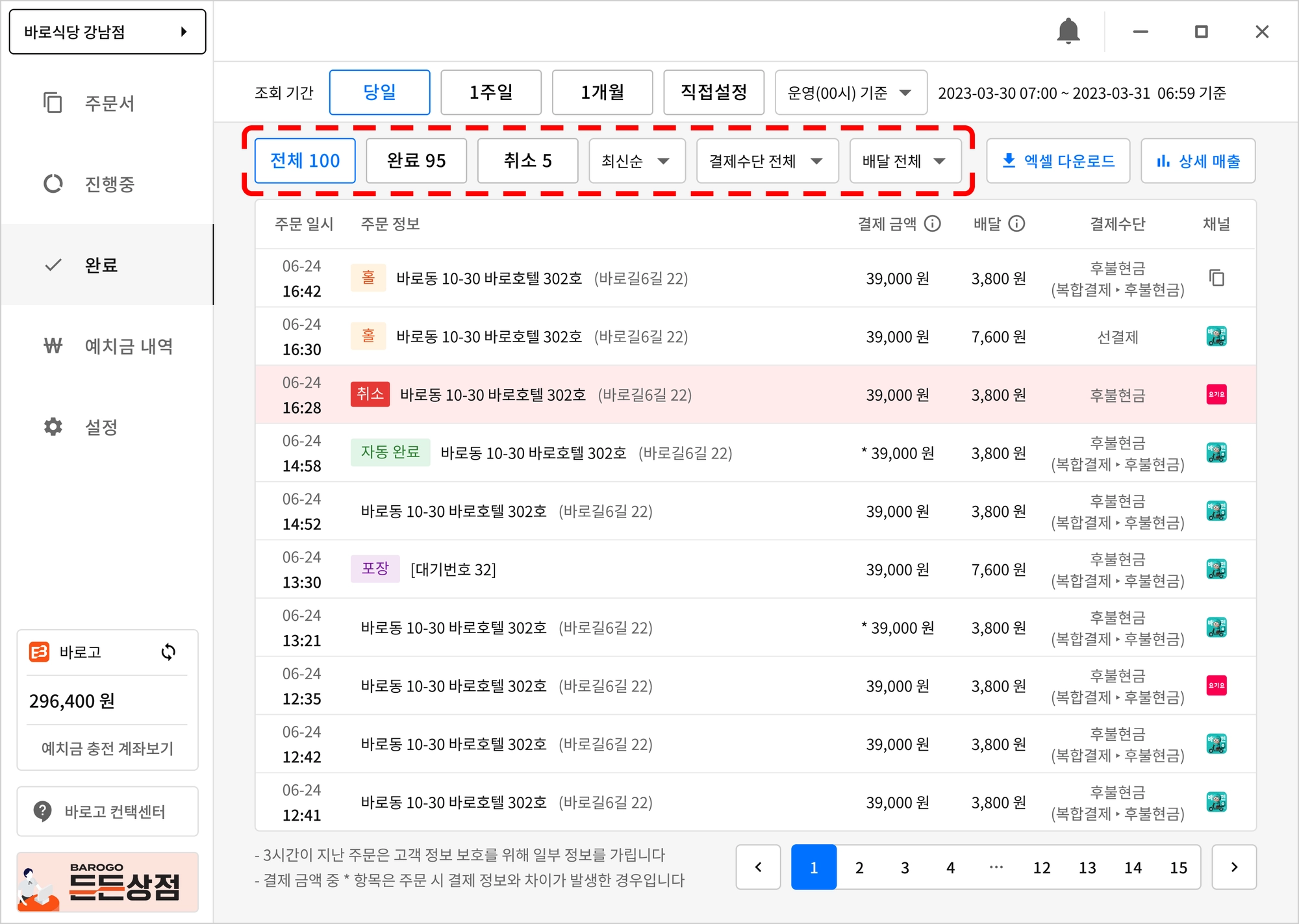 완료된 주문내역을 엑셀로 다운로드하고 싶나요?