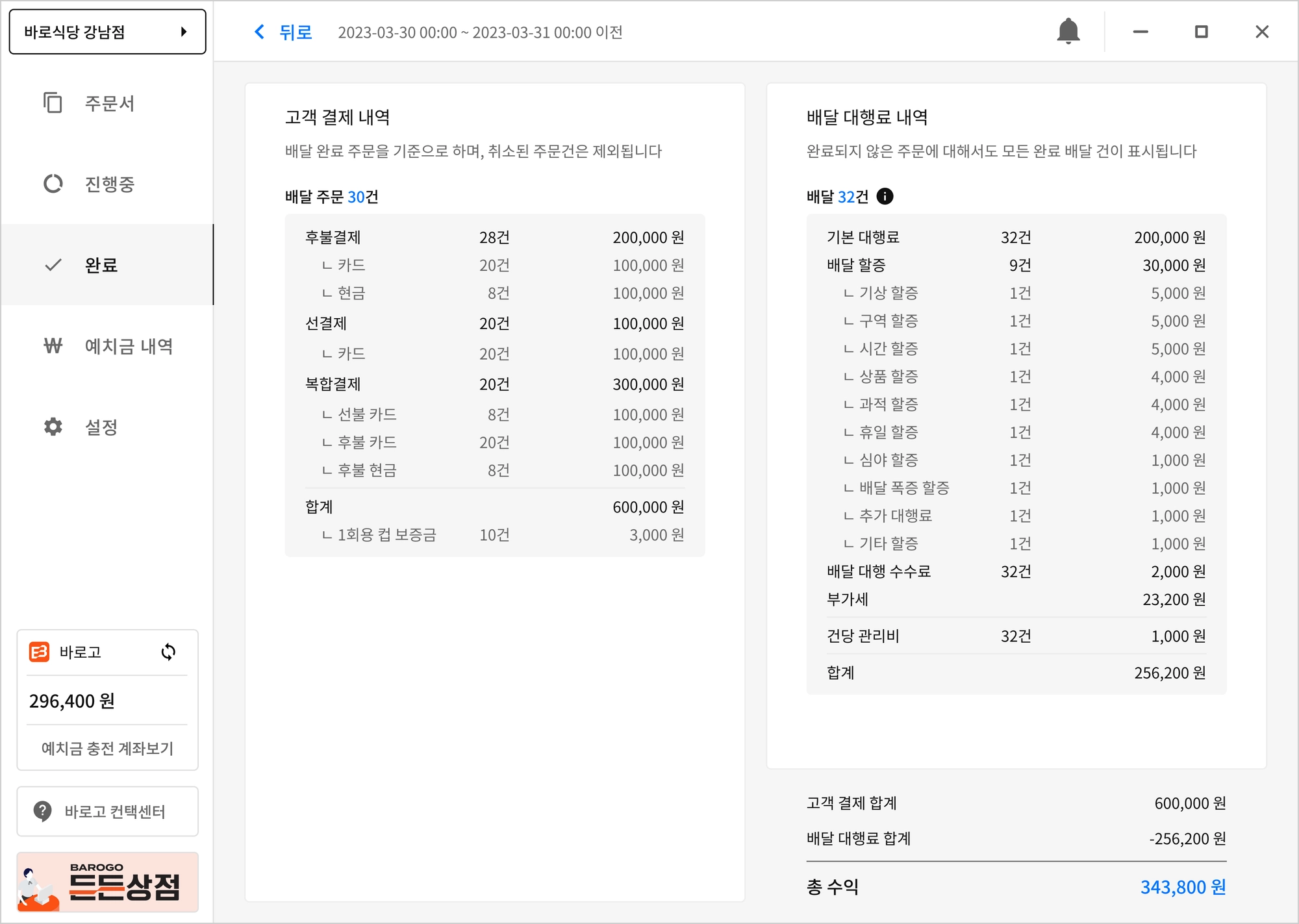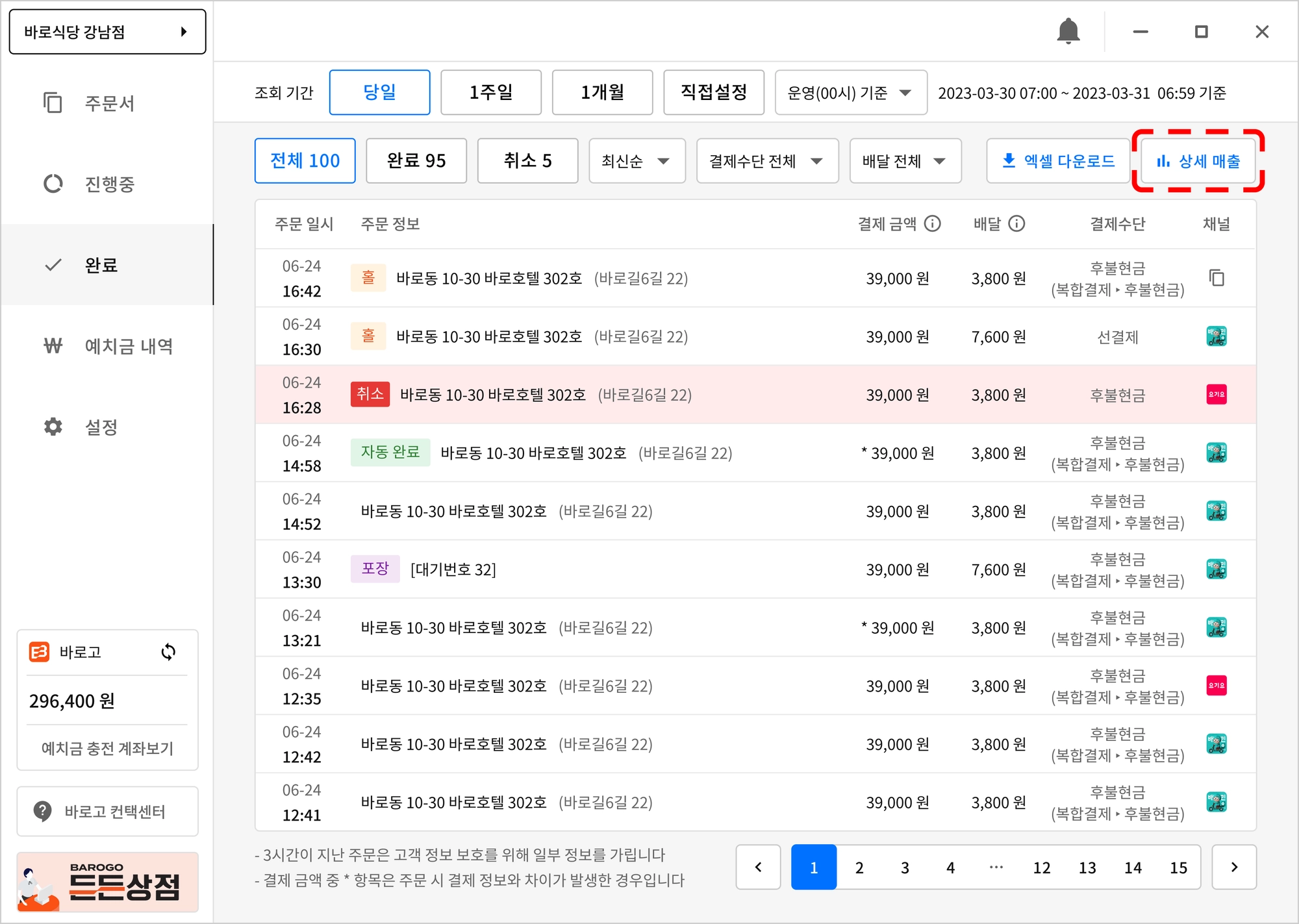 상세 매출 확인