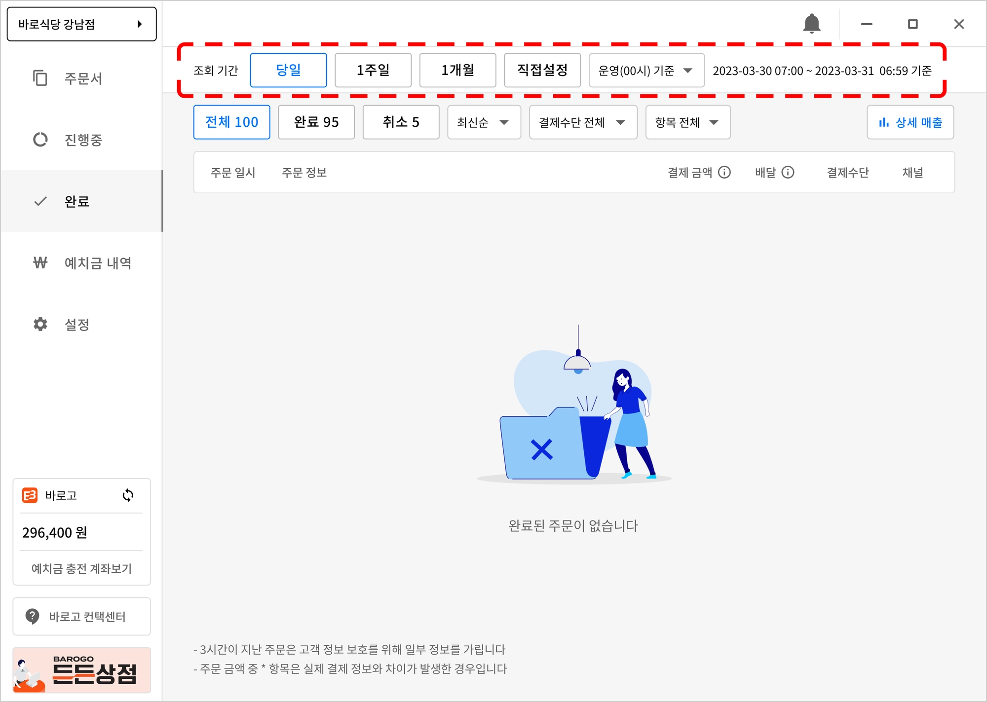 ❗️ 상단 기능을 이용해서 빠르게 주문을 찾아볼 수 있습니다.