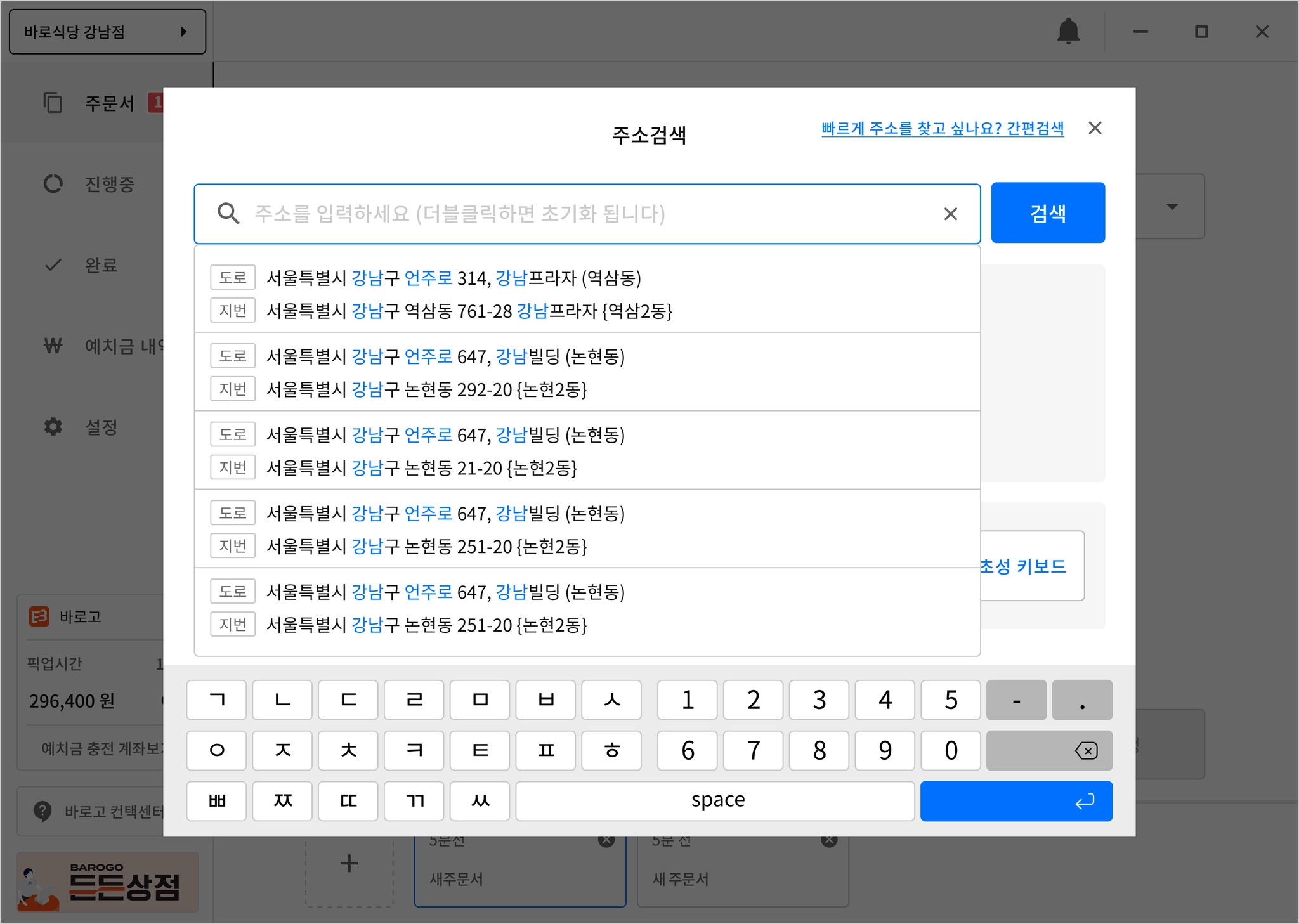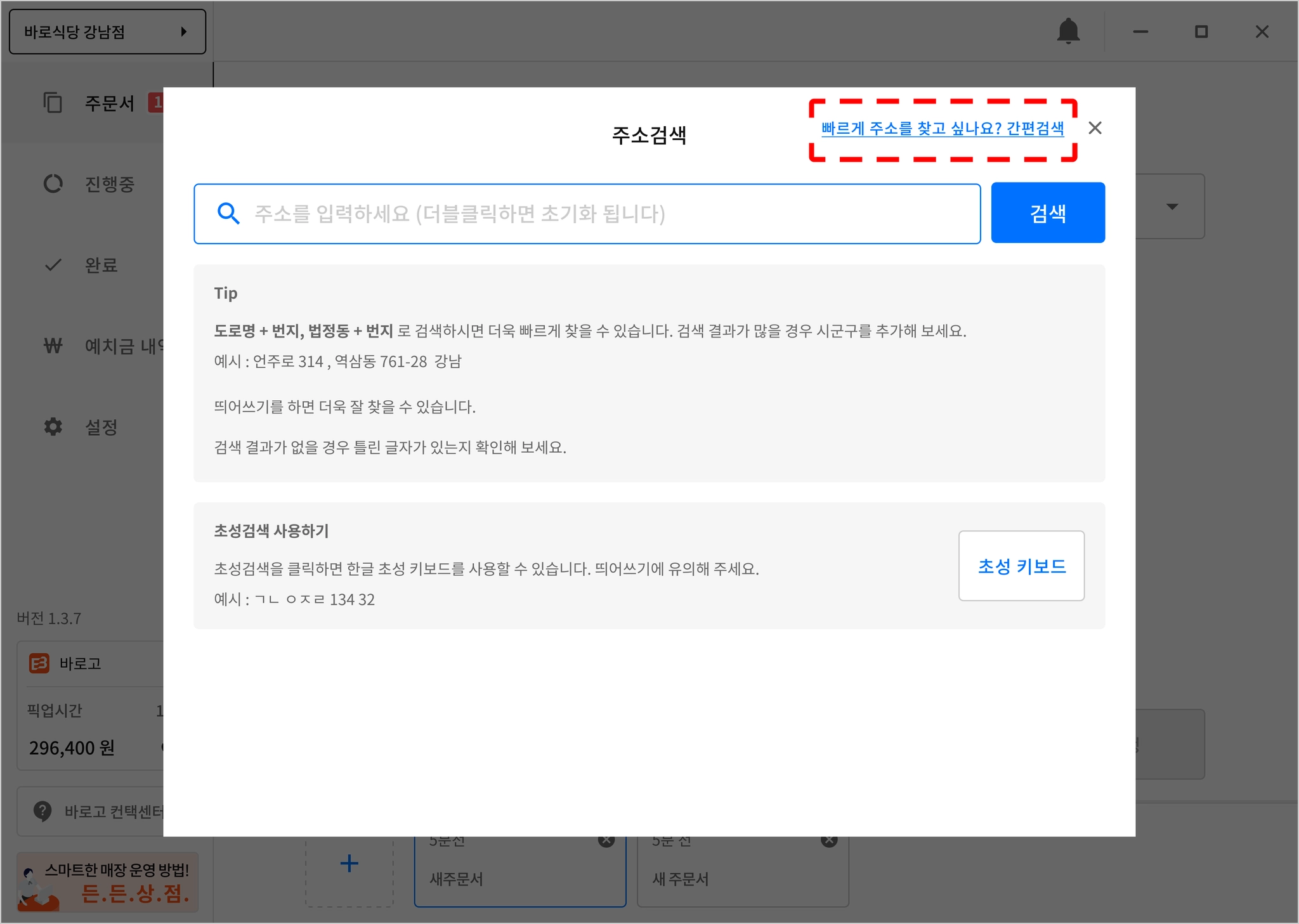 ❗️ 초성 검색을 이용하여 원하는 주소를 빠르게 찾아보세요. (예시 : ㄱㄴ ㅇㅈㄹ 134 32)