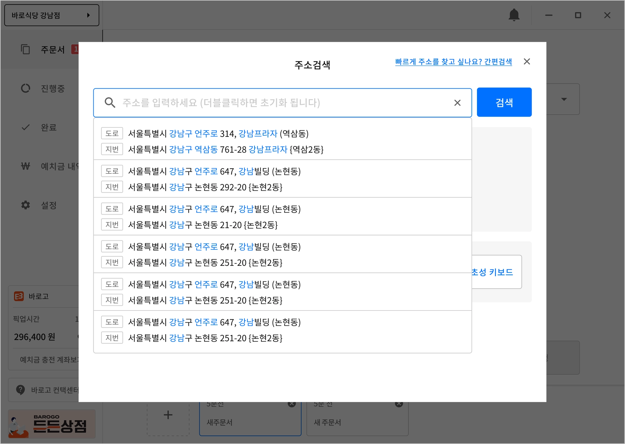 빠르게 주소를 찾고 싶나요? 주소검색 안내 버튼을 클릭하면 바로 간편 검색 페이지로 이동합니다.