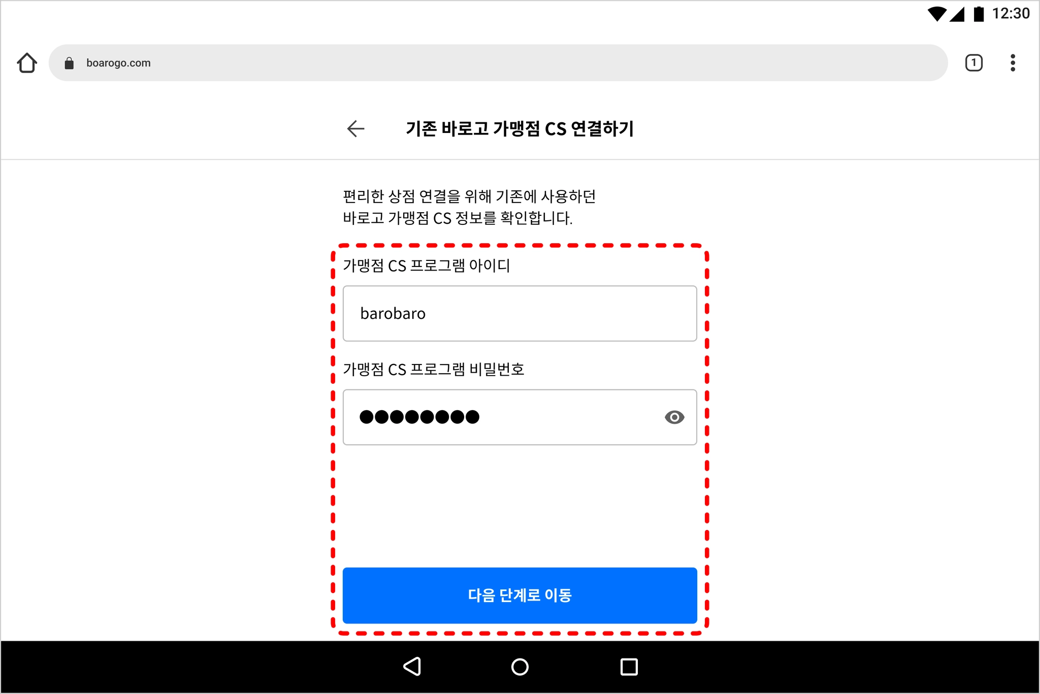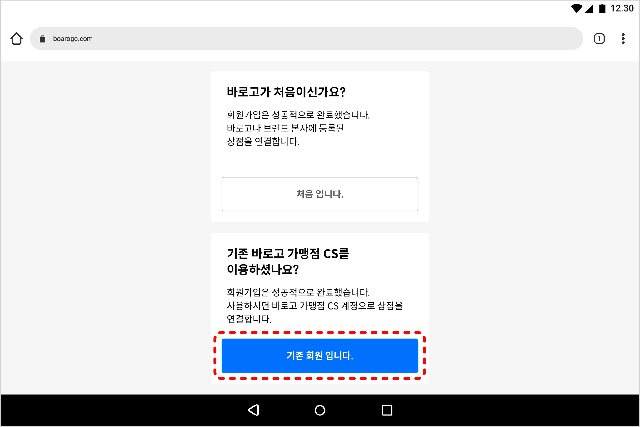 바로고 가맹점 CS 프로그램을 사용하지 않았다면, 바로고 상점 CS 회원이 아닙니다 를 선택해 주세요.