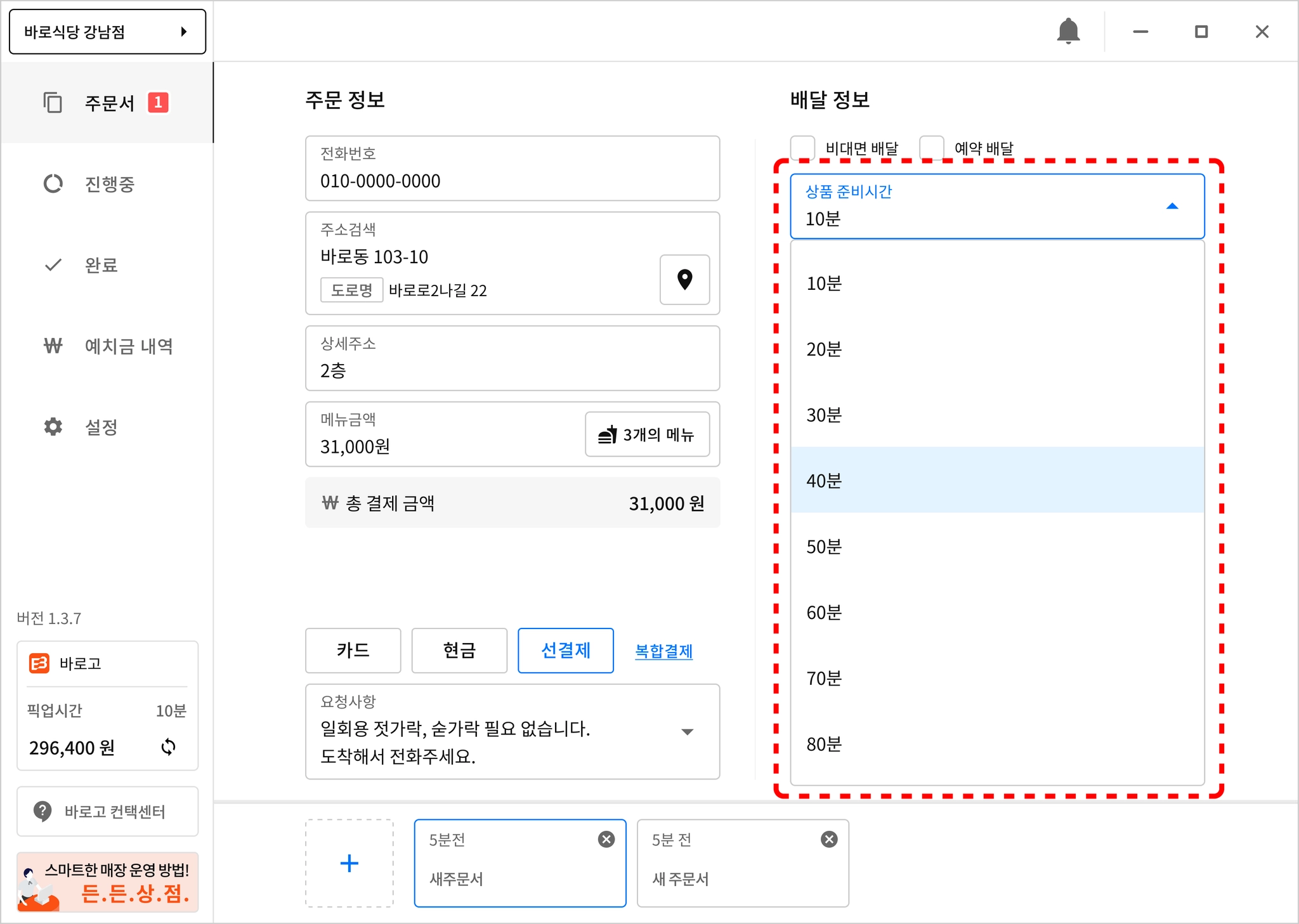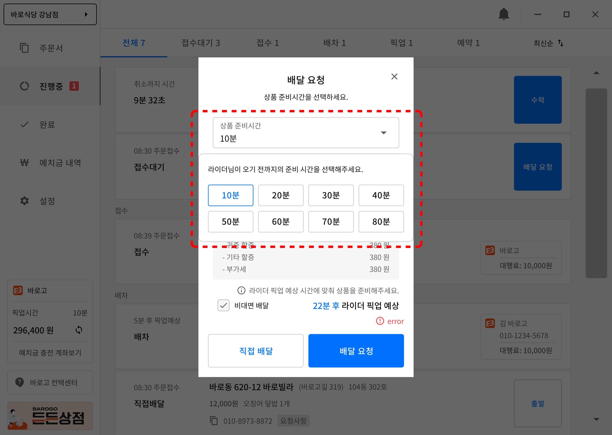 ❗️ 상품 준비 시간은 사장님이 상품을 준비하는데 필요한 시간입니다.