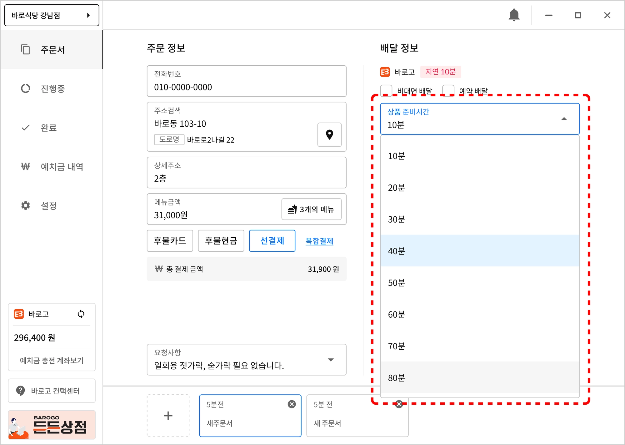 상품을 준비하는데 필요한 시간으로, 배달 상품을 라이더님에게 전달 가능한 시간을 의미합니다.