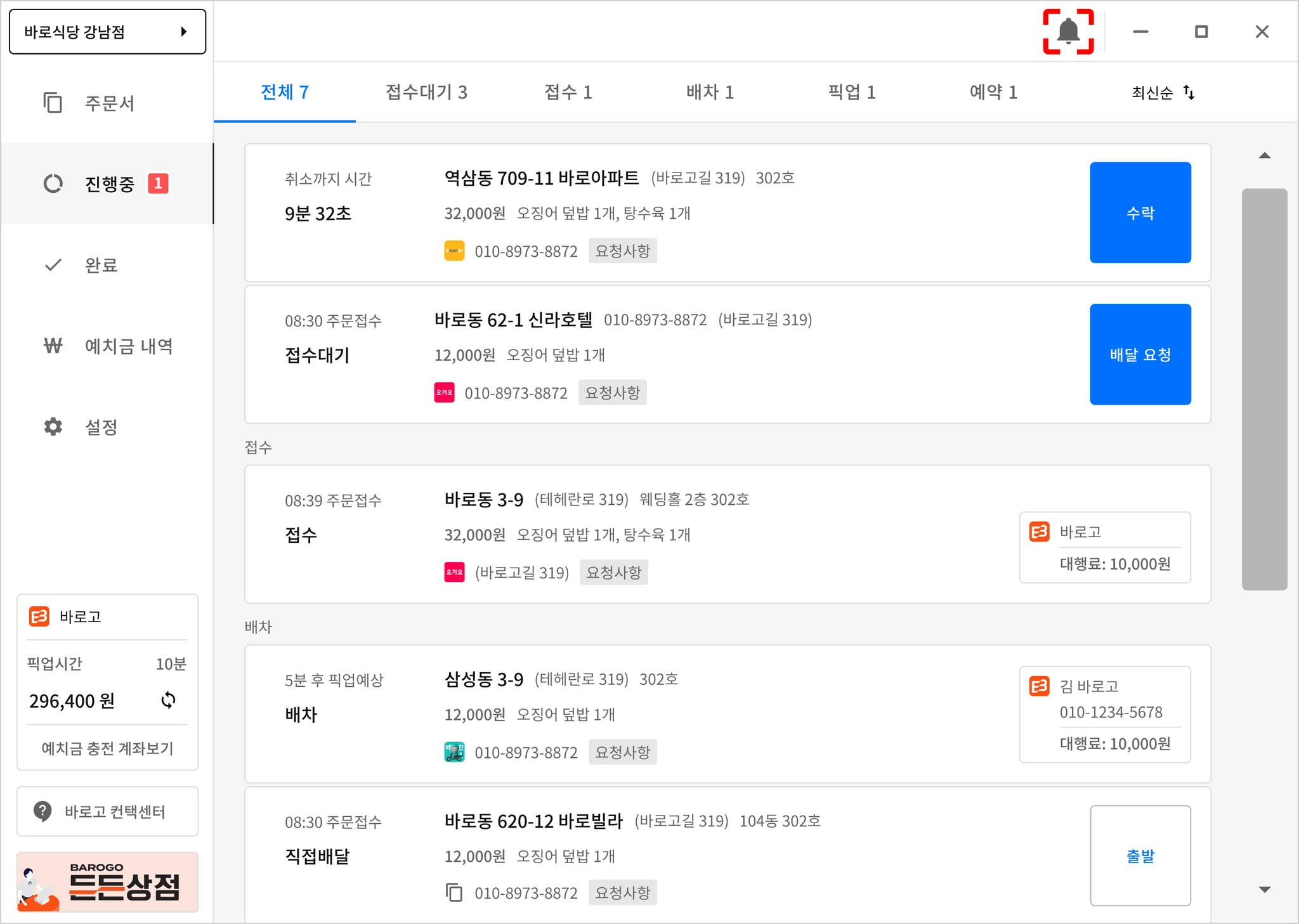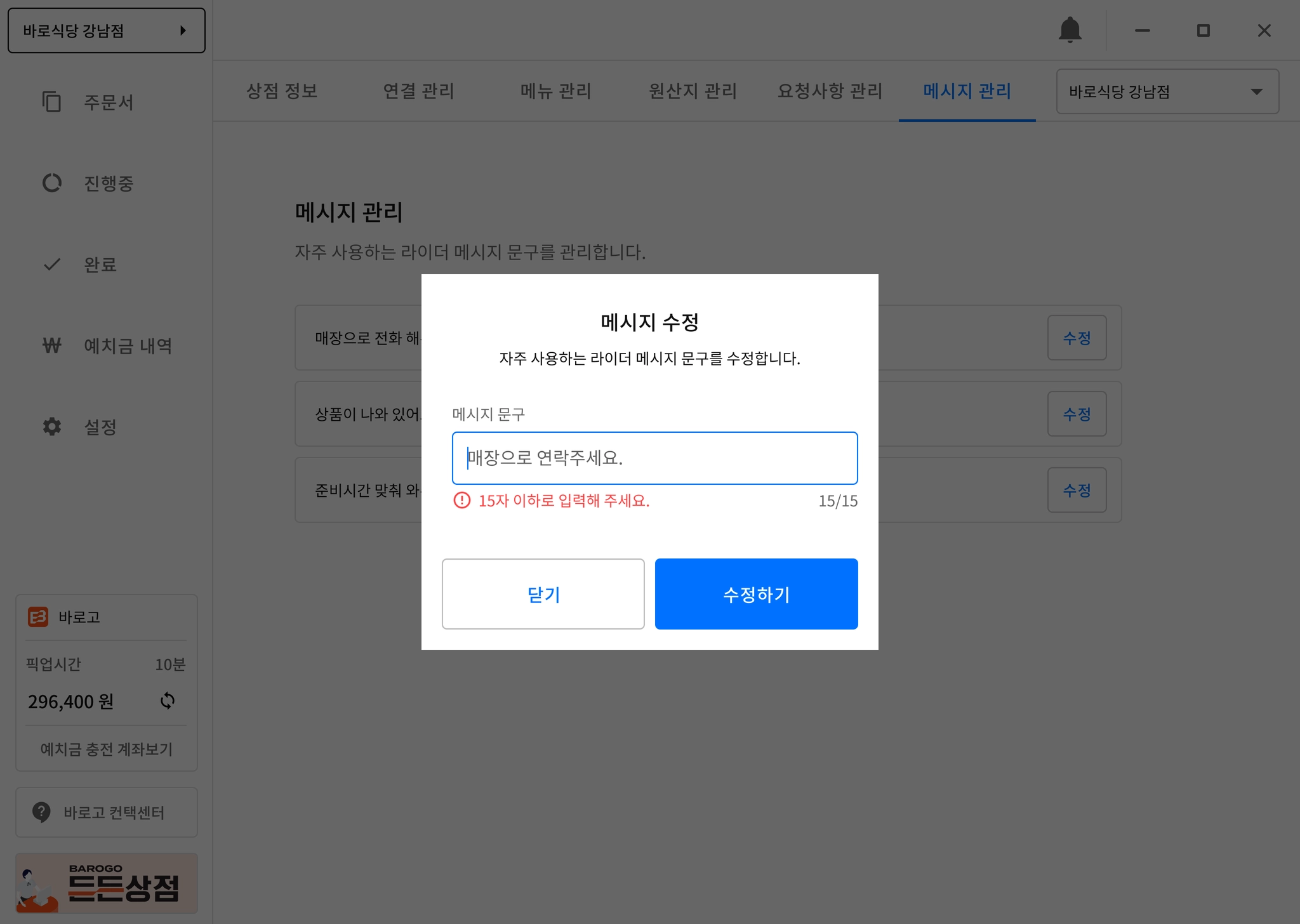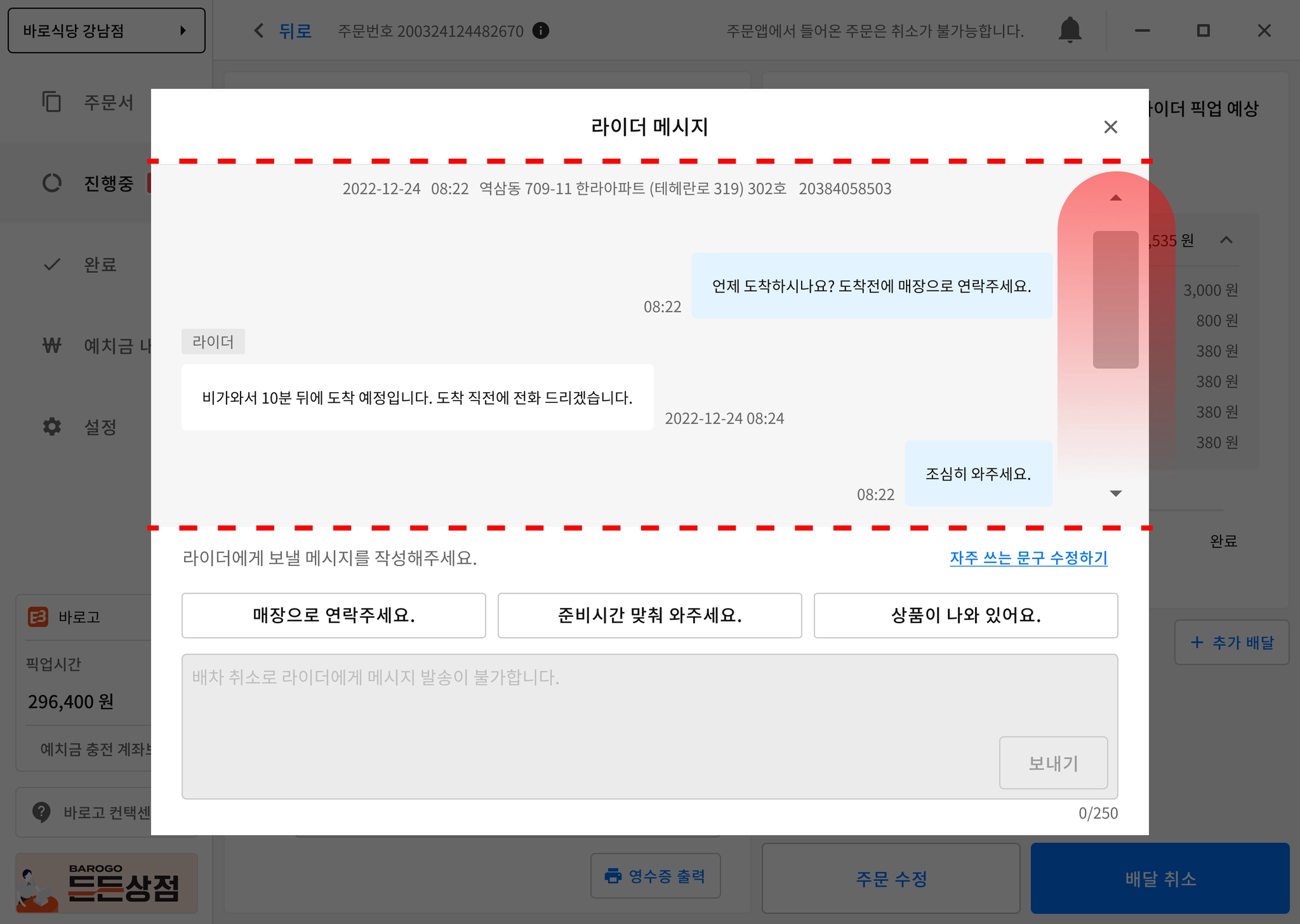 아이콘을 클릭하여 최근 7일간의 라이더가 보낸 메시지를 확인할 수 있습니다.