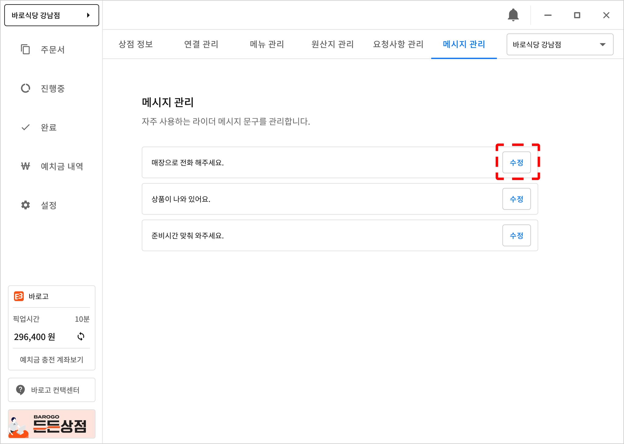 수정이 필요한 문구의 수정 버튼을 클릭해서 원하는 문구로 수정하세요.