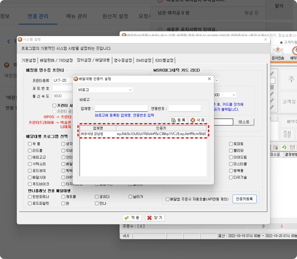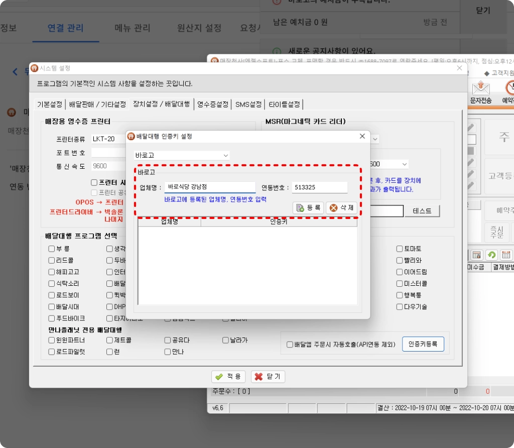 매장천사 프로그램에서 발급받은 연결 번호로 바로고 연결하기