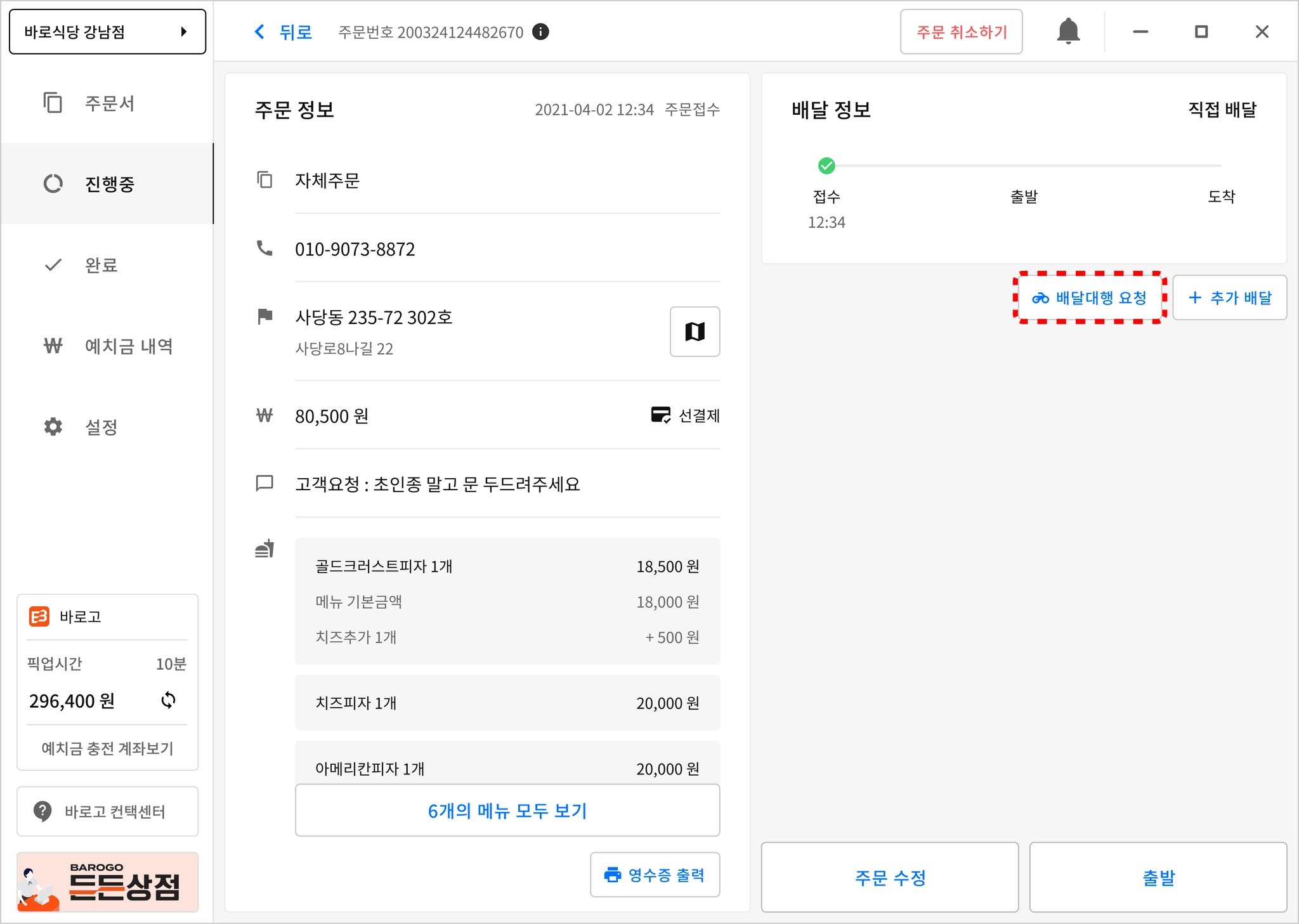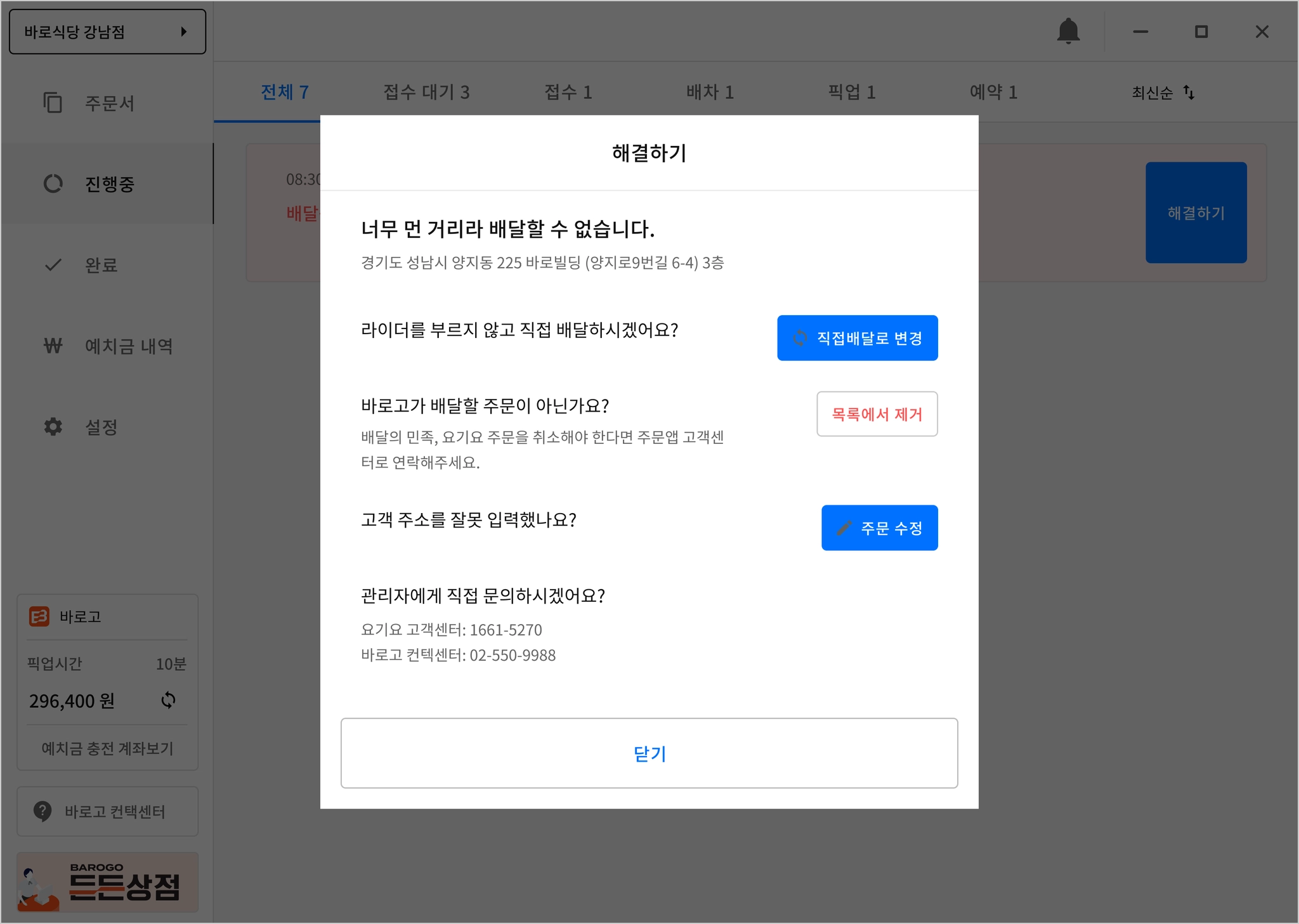 ❗️ 바로고 사장님 프로그램에서 배달의민족/요기요 주문을 취소 할 수 없습니다.