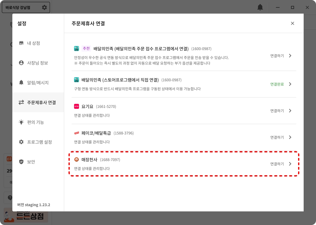 매장천사 프로그램에서 연결하기