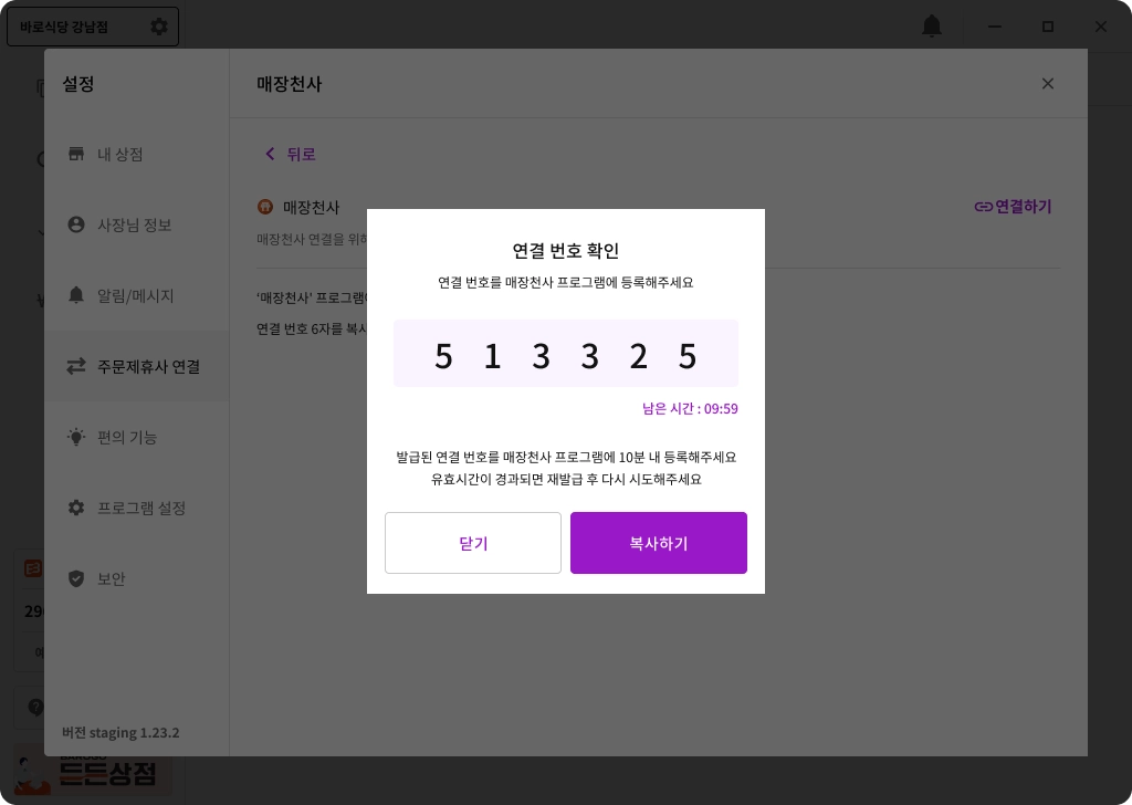 만약 만료가 된 경우 재발급하기버튼을 눌러 새로운 연결 번호를 다시 발급 받을 수 있습니다.