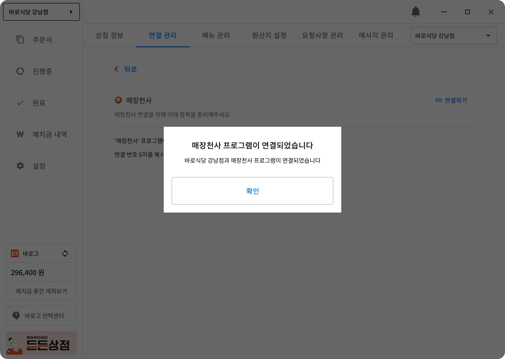매장천사와 바로고 연결하기